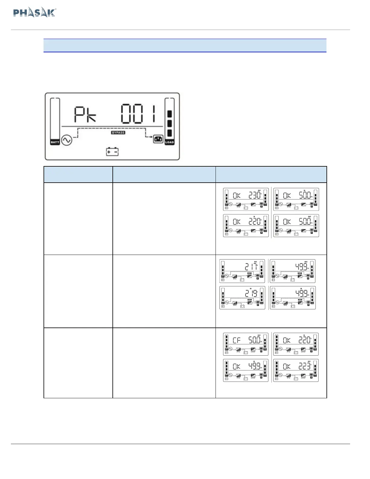 3.8. Function description Mode / Status Phasak UPS