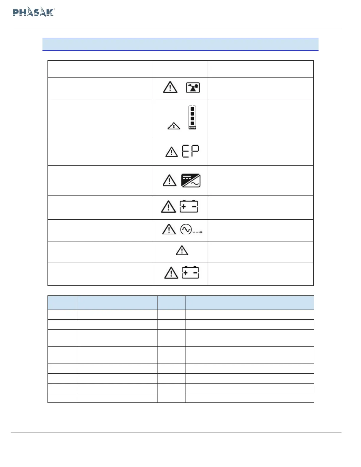 Phasak PH 9360 - Warning Indicators