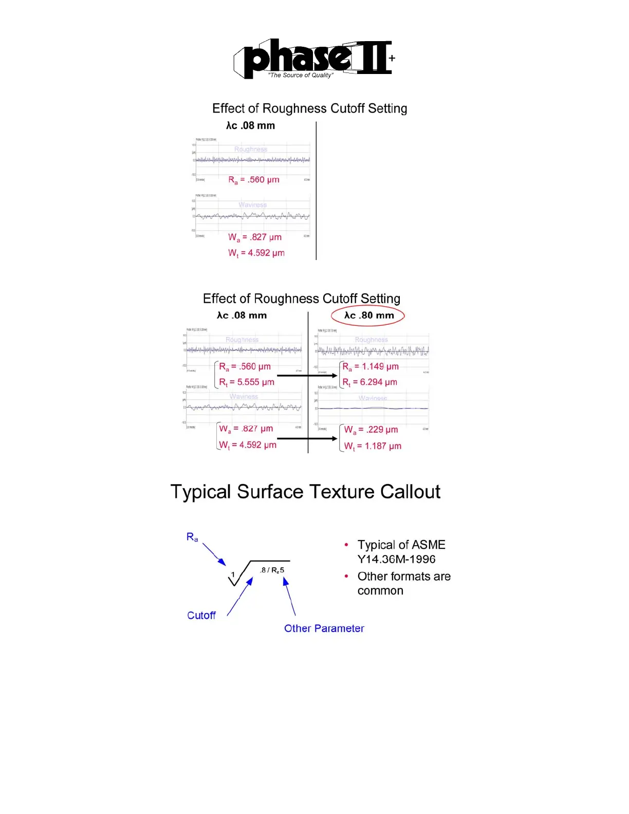Phase 2 SRG-4600 - Surface Texture Parameters and Standards; Effect of Roughness Cutoff Setting; Typical Surface Texture Callout; Roughness Average (Ra) Definition