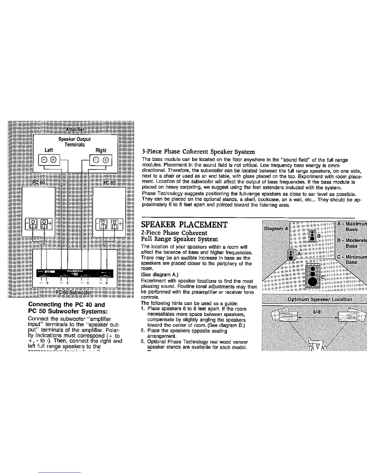 Phase-Tech PC 40 - 3-Piece System Connection; 2-Piece System Connection; Speaker Placement Guidelines