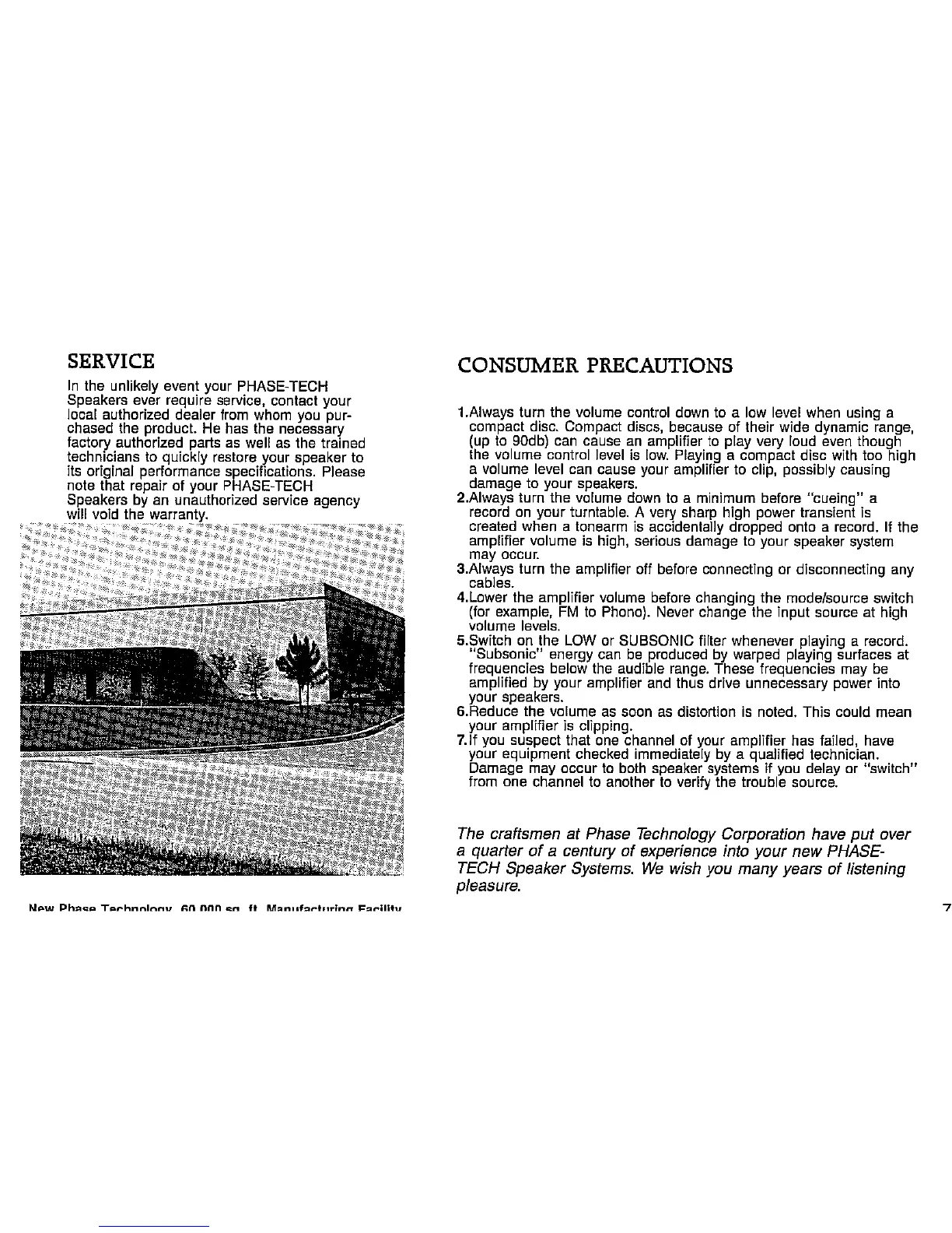 Phase-Tech PC 40 - Service and Precautions; Service Information; Consumer Precautions