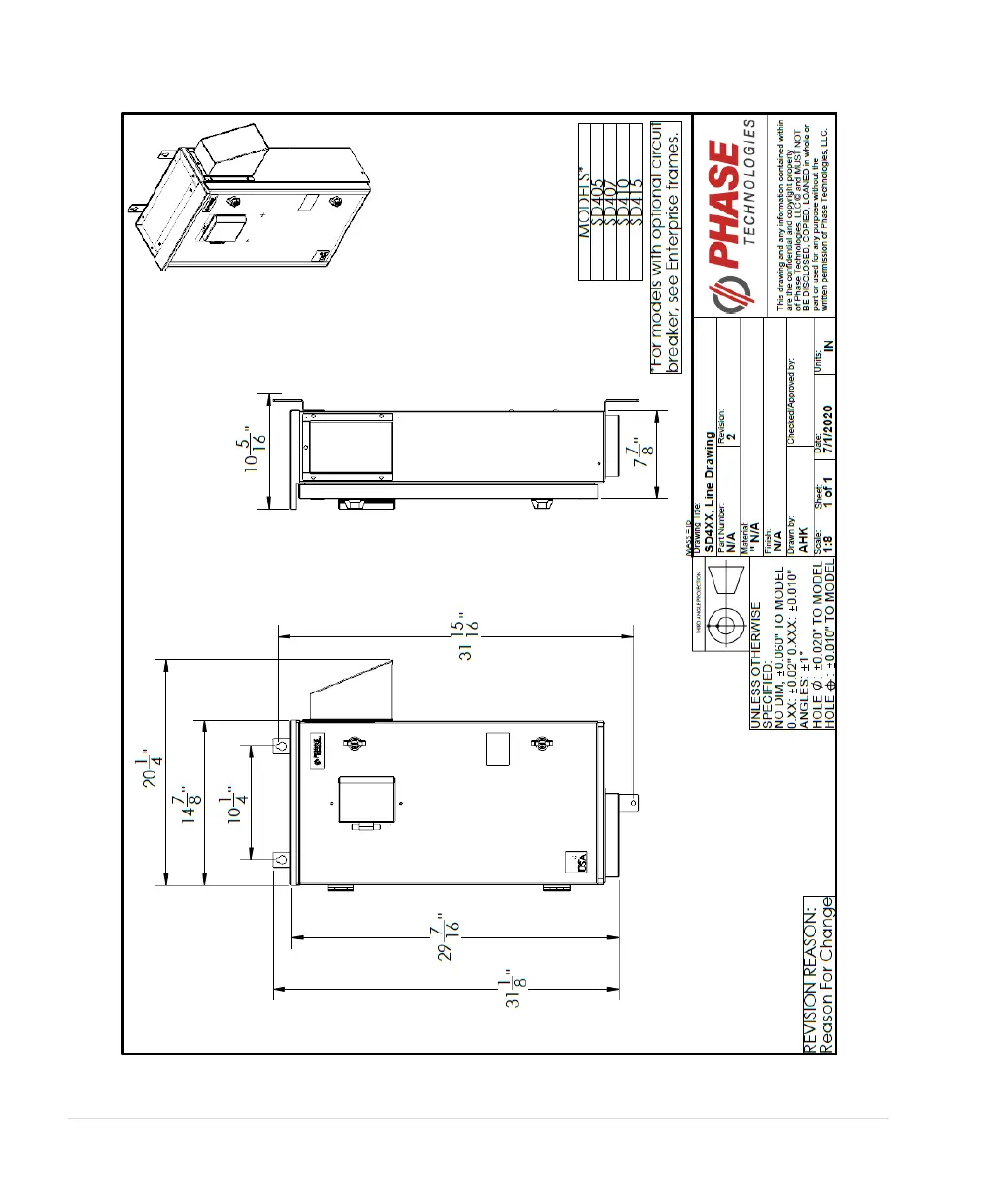 Figure 8 - SD Series Line Drawing (if selected with optional breaker, see Figure 9 or Figure 10)