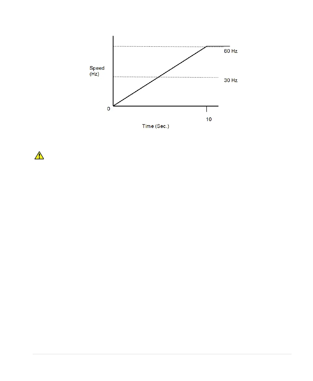one second in order to protect the pump from damage. Factory default ramp time is 0-30 Hz in one