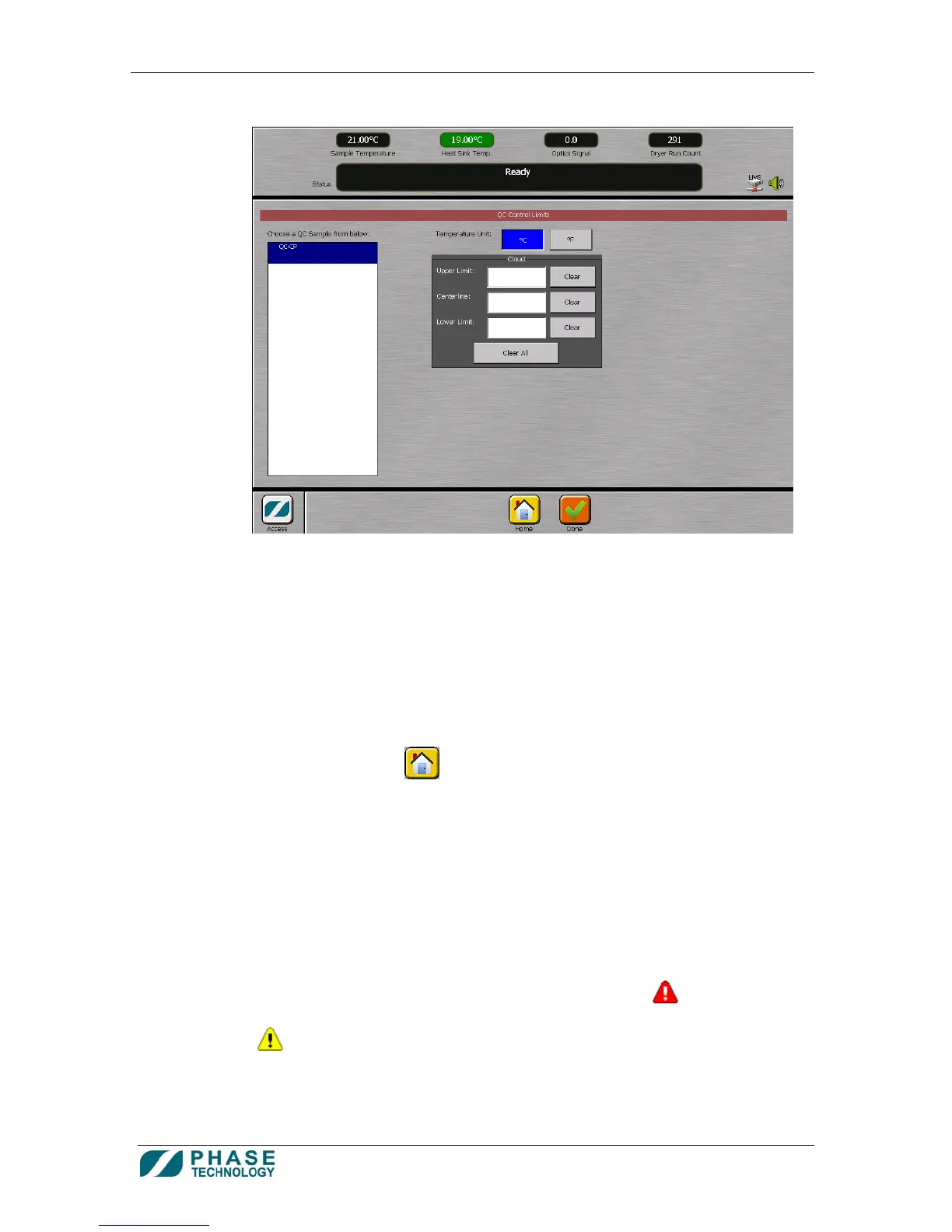 to save the control limits and return to the Home screen.