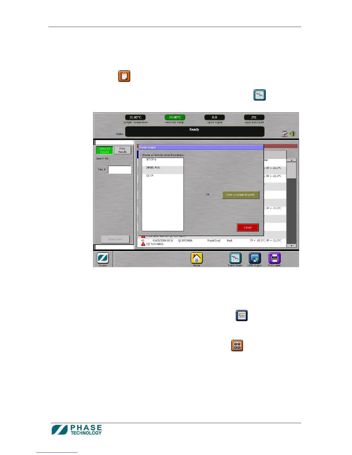 b. To generate a control chart (for a QC sample) or a trend graph, press RESULTS