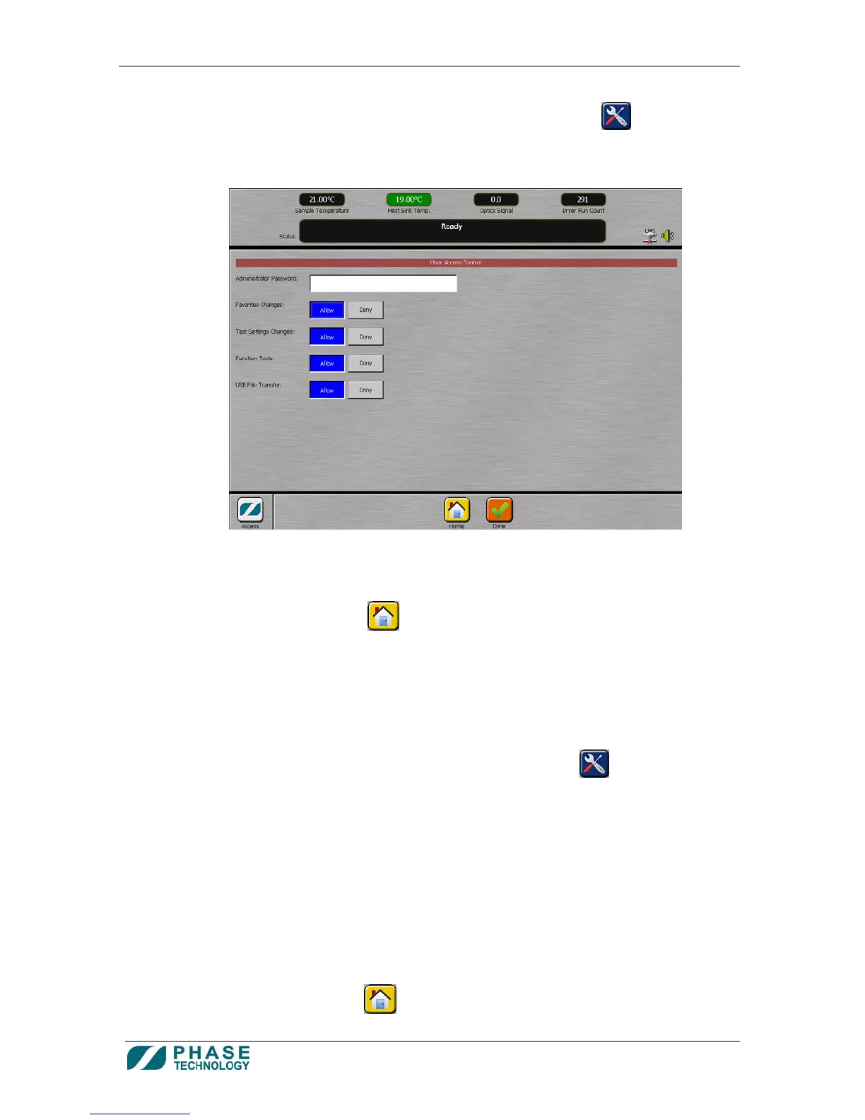 c. Press USER ACCESS CONTROL. The following screen appears.