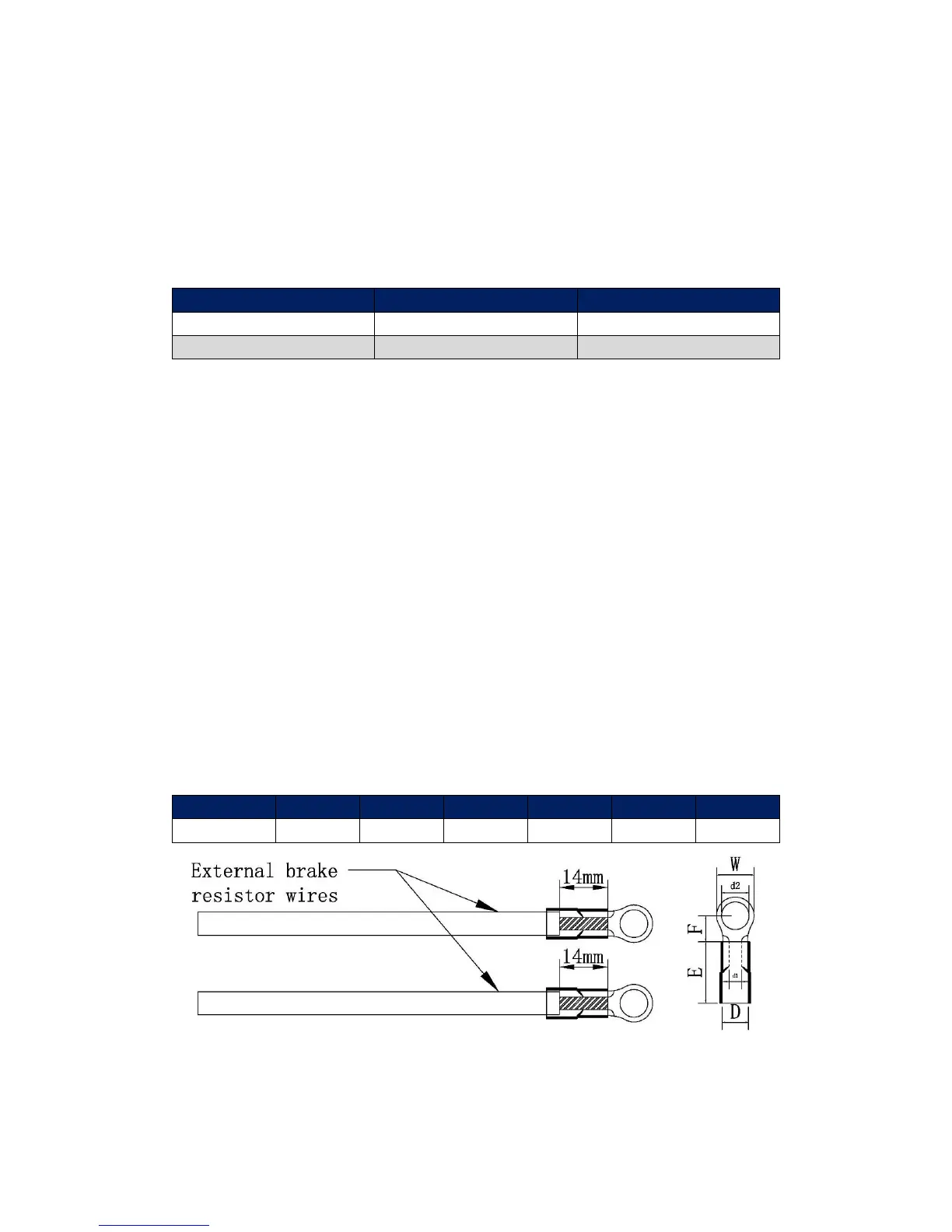 NOTE: Brake resistor wires’ insulation grade must be higher than 1000Vac and 3000Vdc.