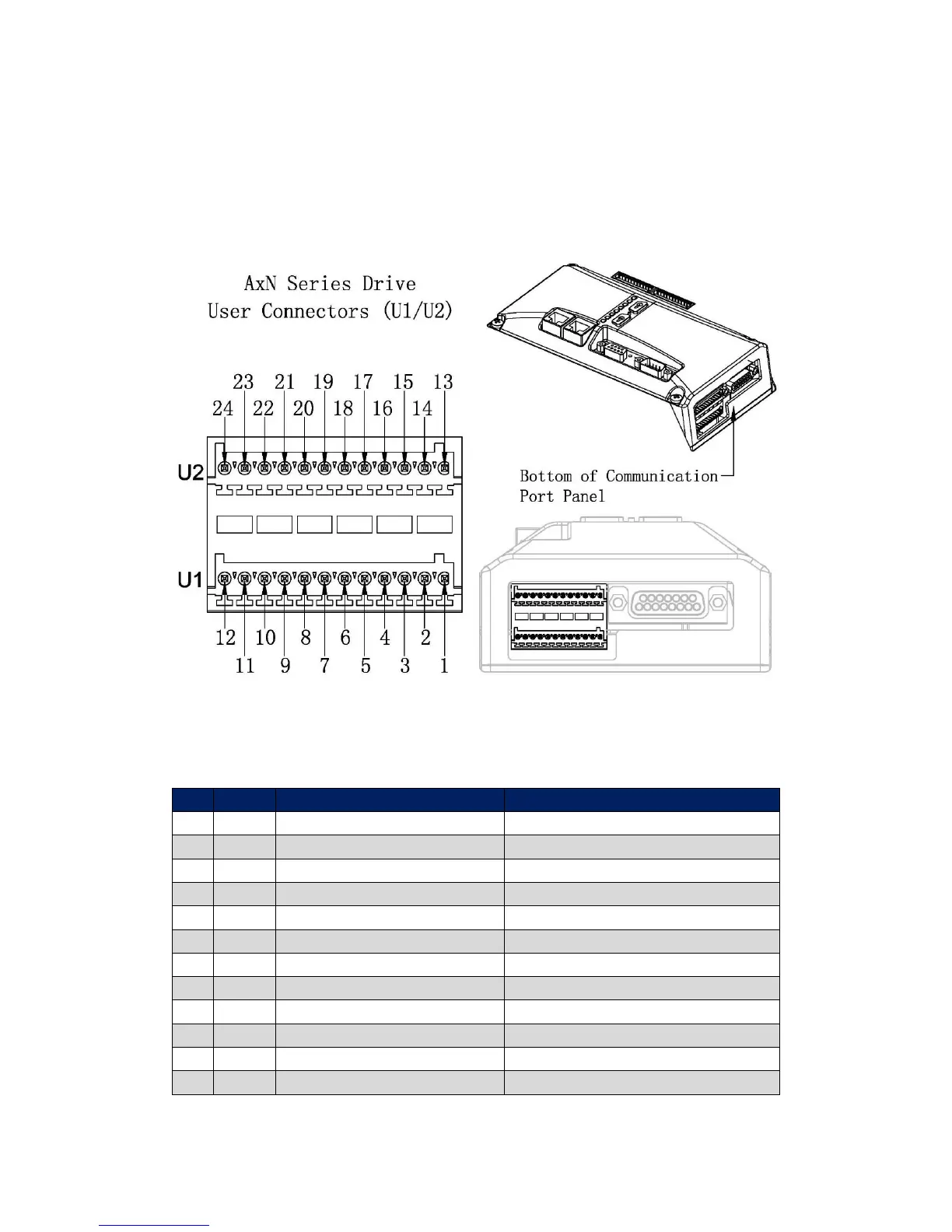 AxN Series Drive’s User Connectors (Male Plug, 2 × 12 pin) are on the left bottom of the