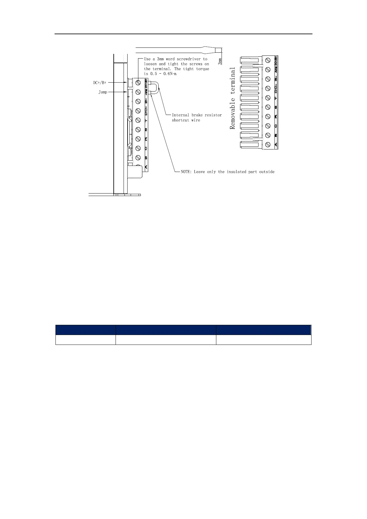 NOTE: Brake resistor wires’ insulation grade must be higher than 1000Vac and 3000Vdc.