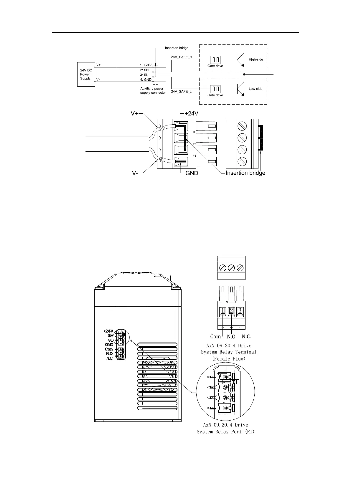 AxN 09.20.4 Drive’s System Relay Port (Female Plug, 3Pin) is on the top of the drive. And a