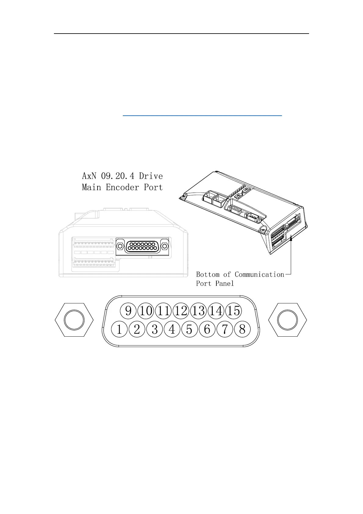 AxN 09.20.4 Drive’s Main Encoder Port (Female Plug, 15 Pin D-Sub) is on the right bottom of the
