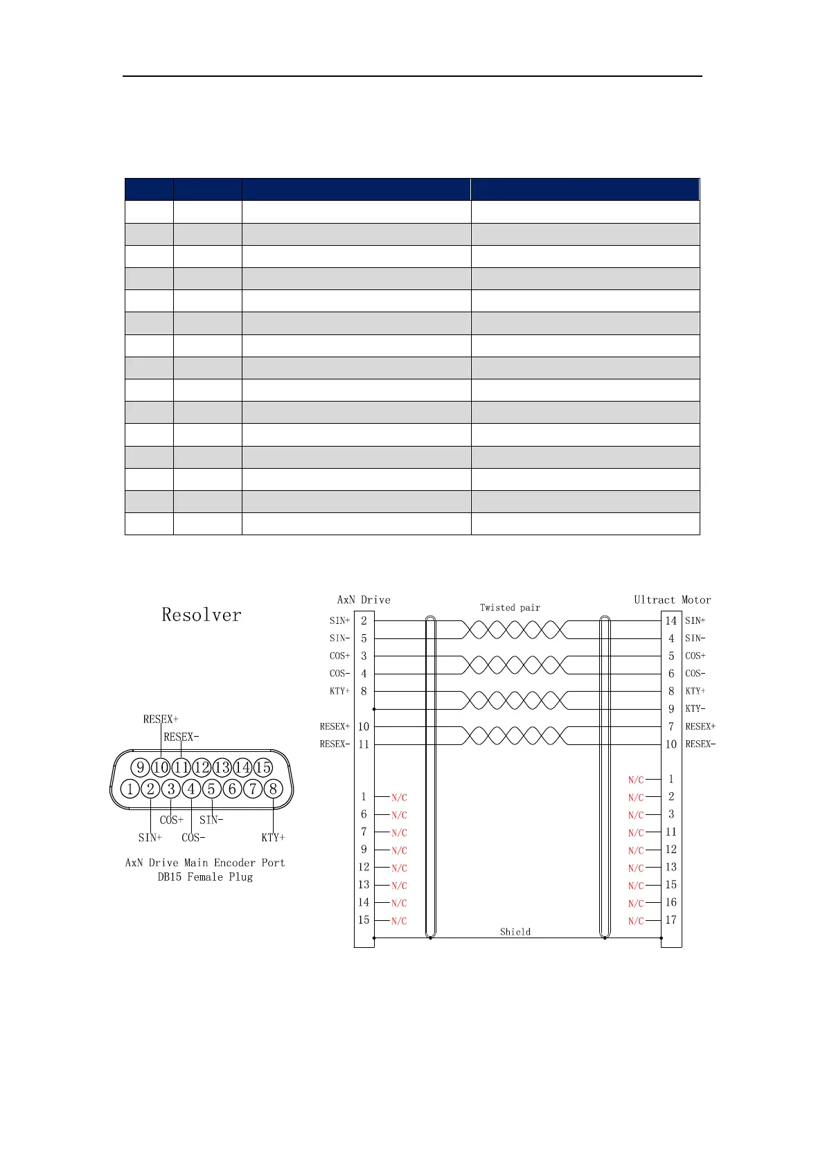 Connection Table (with Ultract Series Motors)