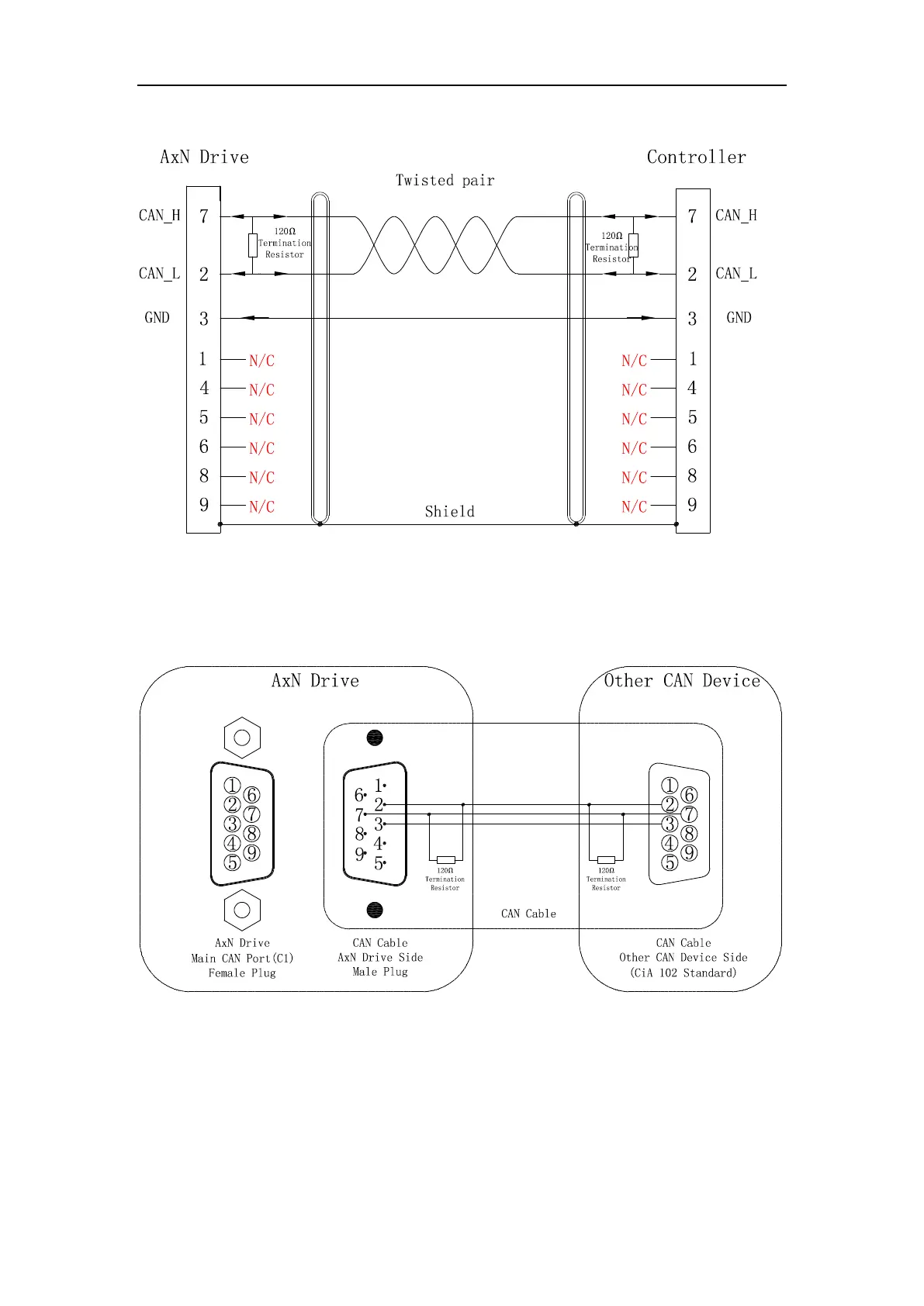 Note: Only the first and the last CAN node device should use a 120Ω terminal resistor.