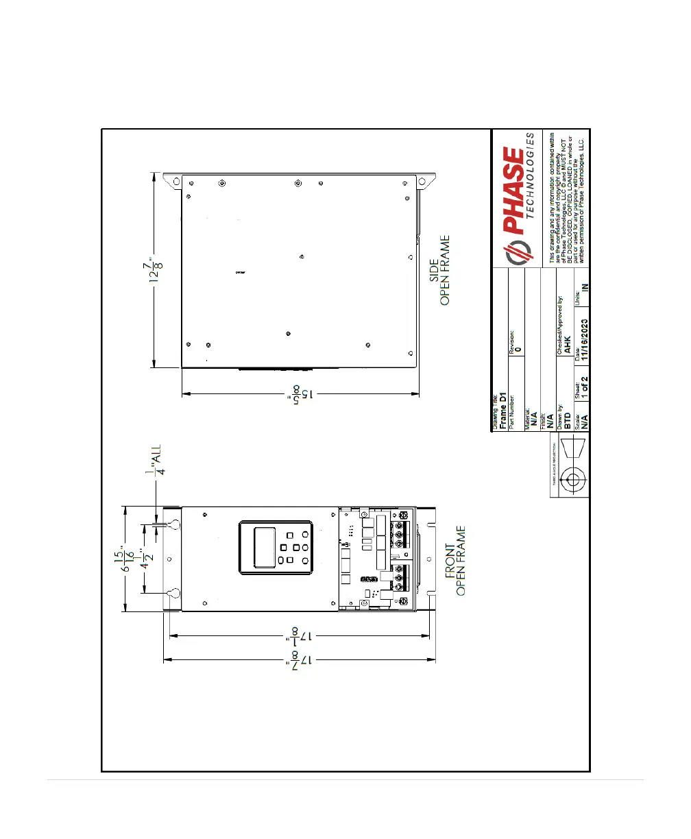 Phase LHX Series - Dimensional Drawings; D1 Open Frame Dimensions