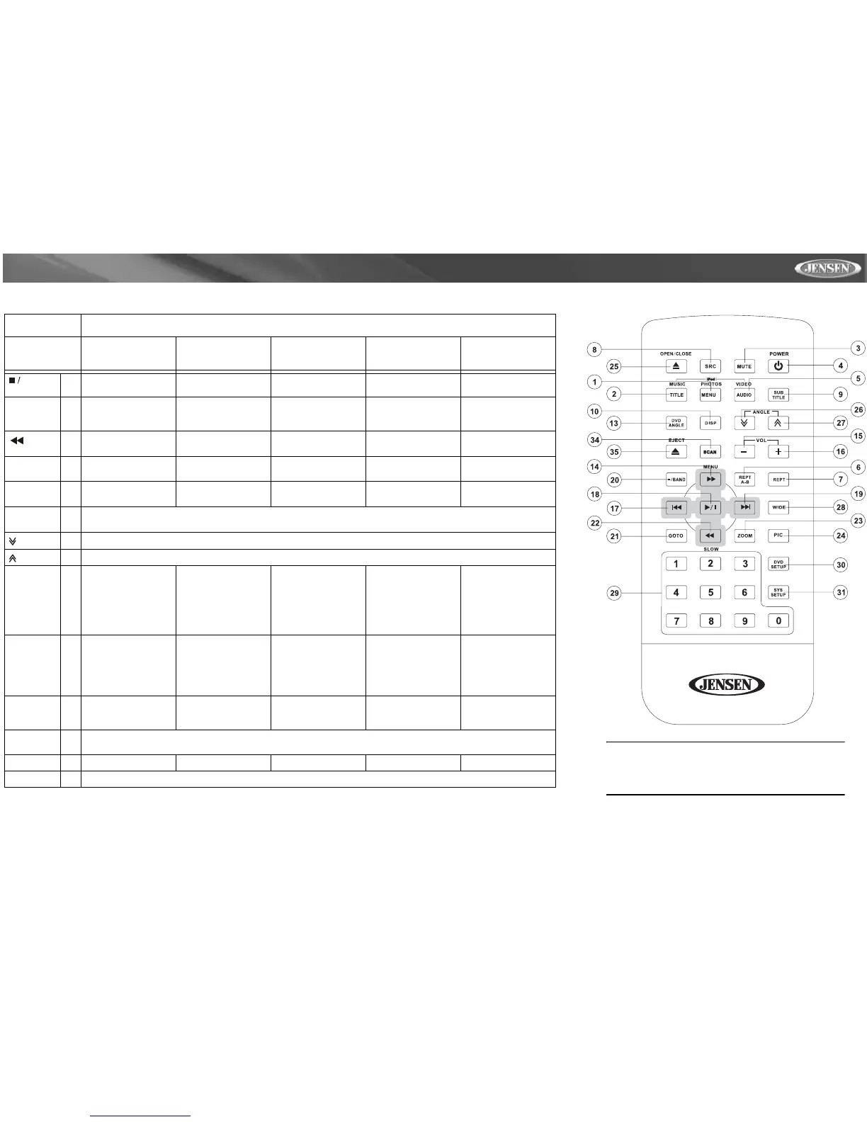 Tabla 1: Funciones de Control Remoto