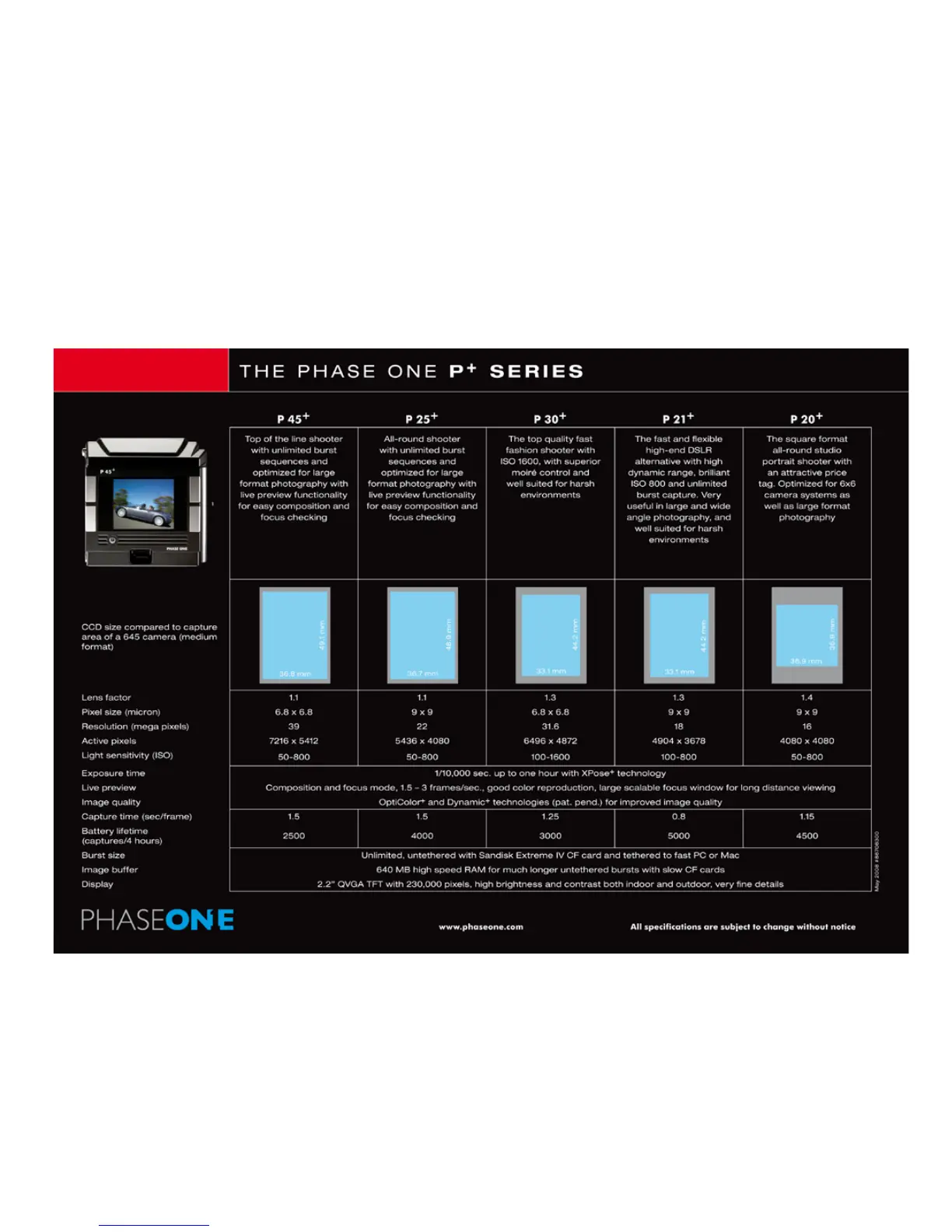 PhaseOne 645 AF - P+ Series Technical Specifications