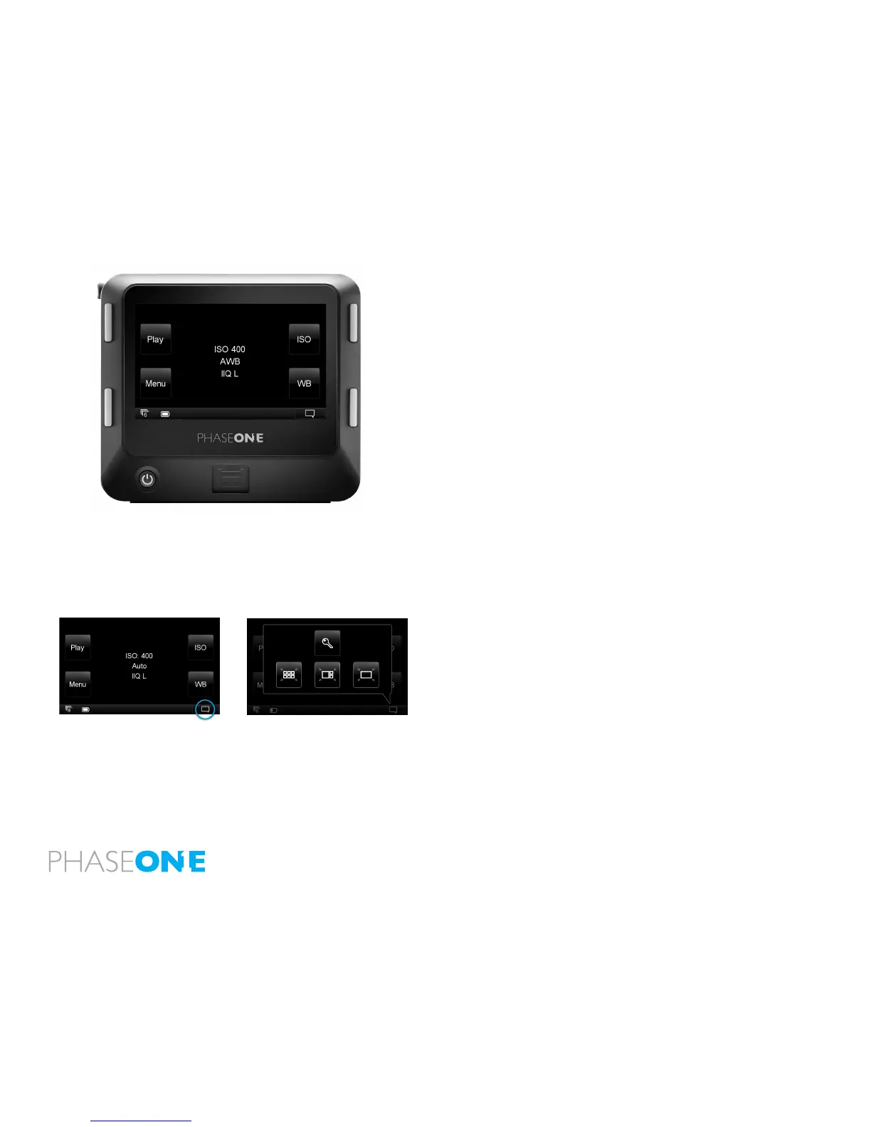 view captured images, the Menu to congure the IQ back’s setup and ISO