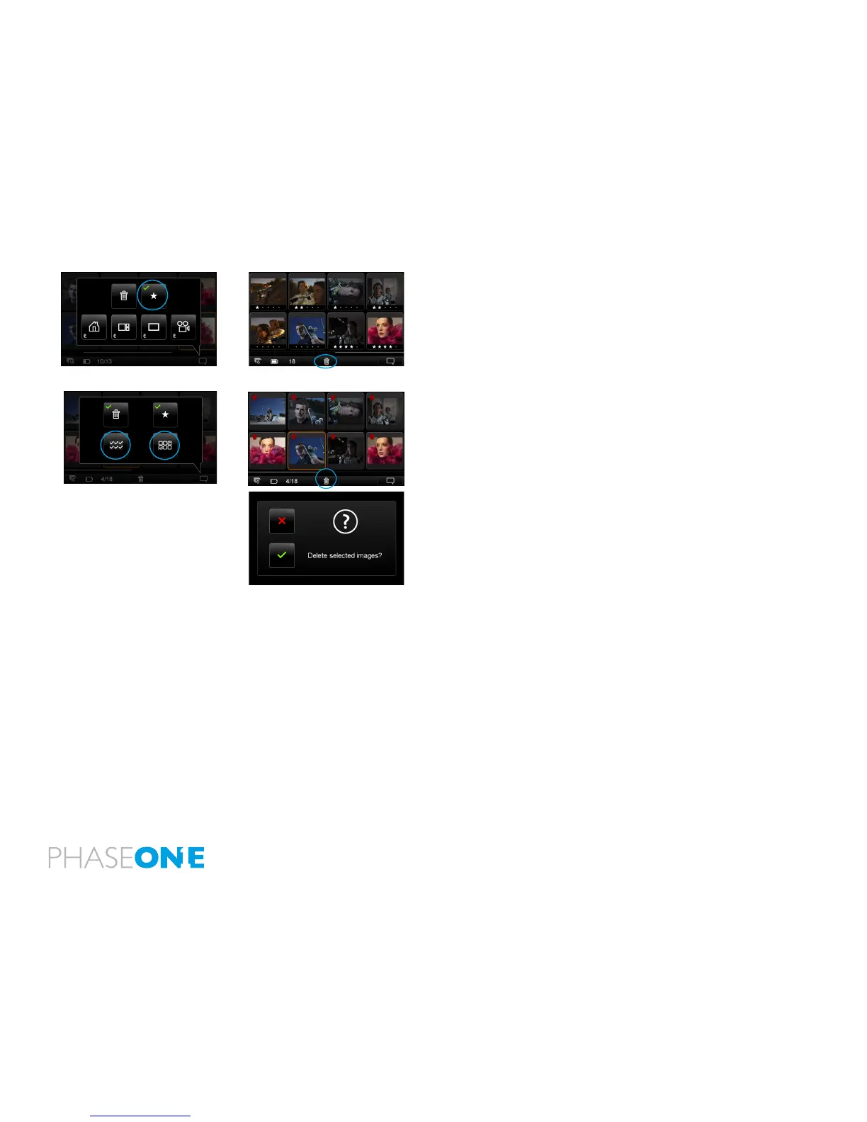 delete the selected thumbnails but tapping the white trash icon at the
