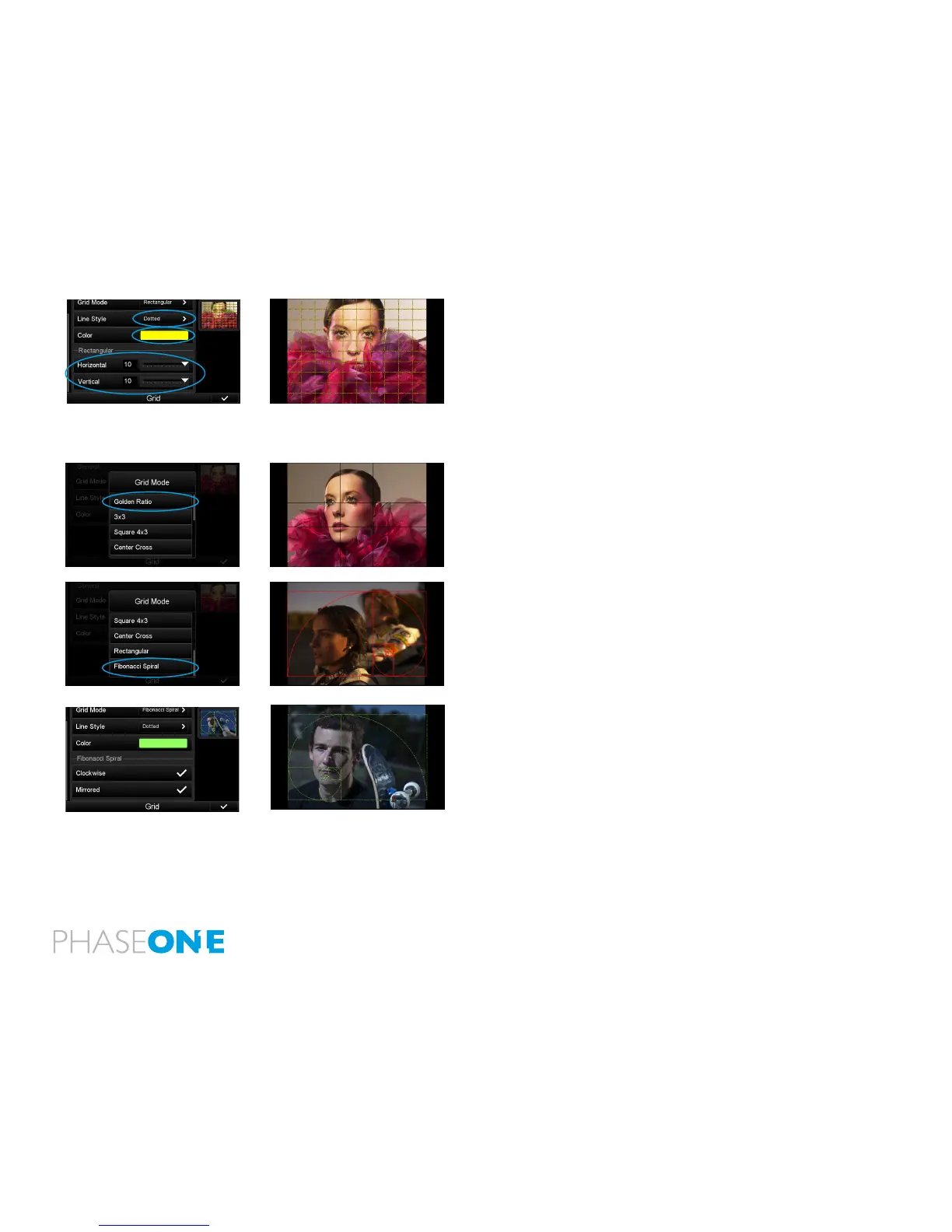 The Grid Mode provides numerous style combinations. The Rectangular