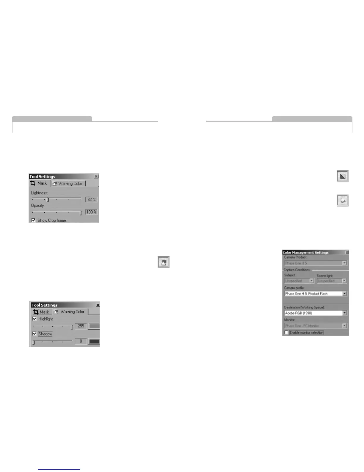Tool allows the color and opacity of the crop mask to be set. This tool is