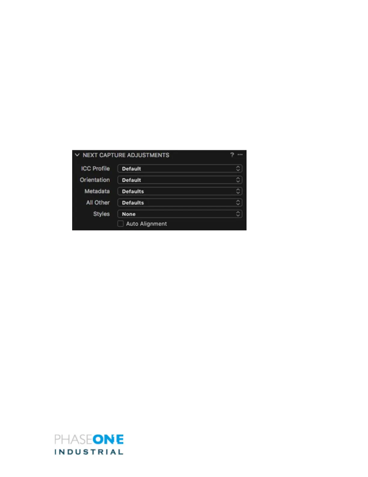 PhaseOne iXH - Selecting Next Capture Adjustments