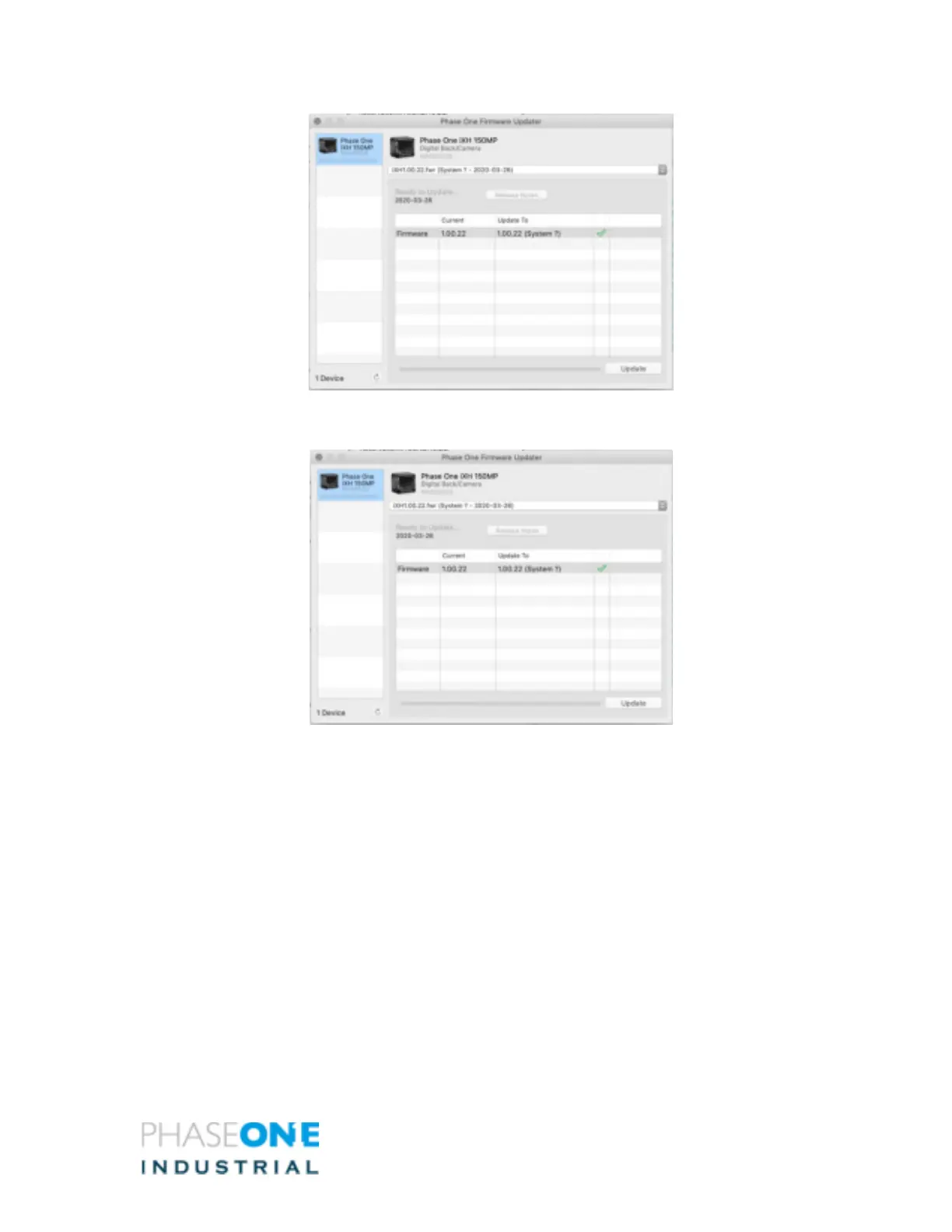 6. To update the camera to the latest firmware, click Update. The firmware is