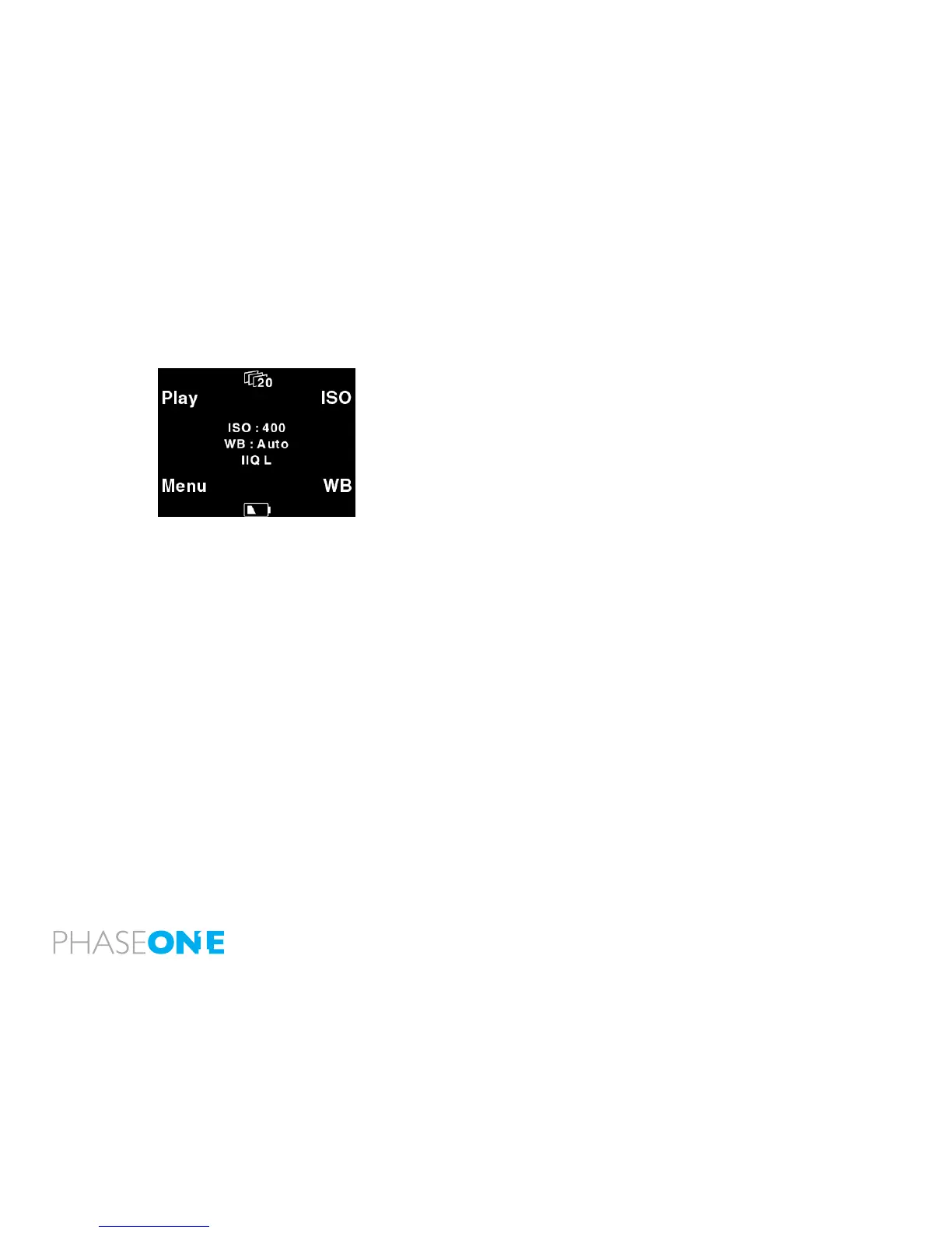 The main screen also shows the current ISO setting, white balance