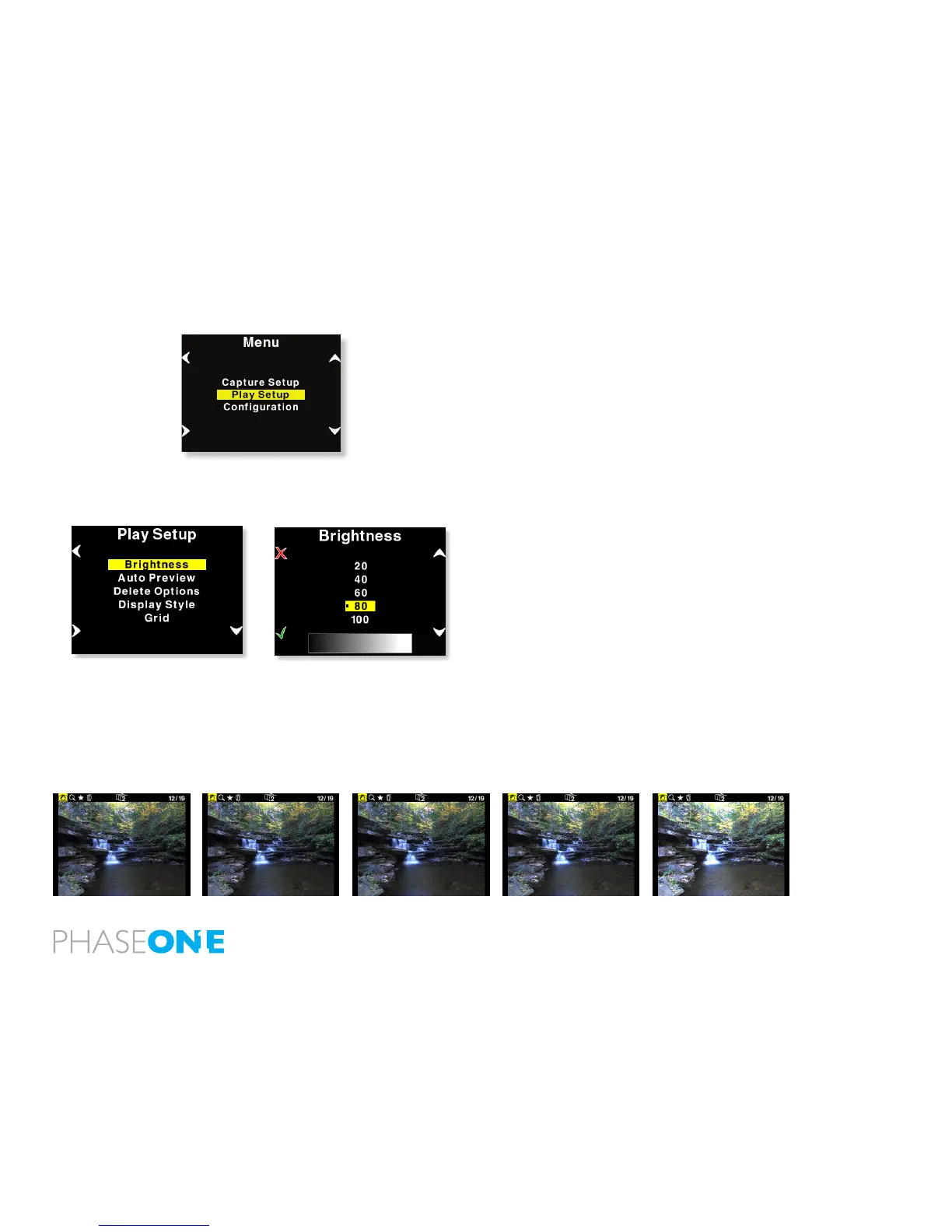 Inside “Play Setup” you can adjust and select Brightness, Auto Preview,