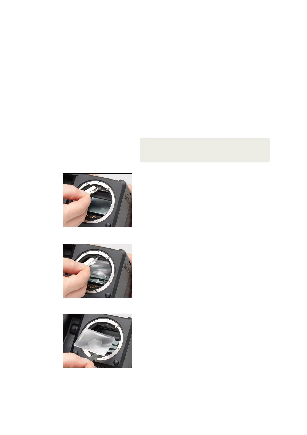 Remove the lens, and tilt the XF Camera Body backwards with your hand so
