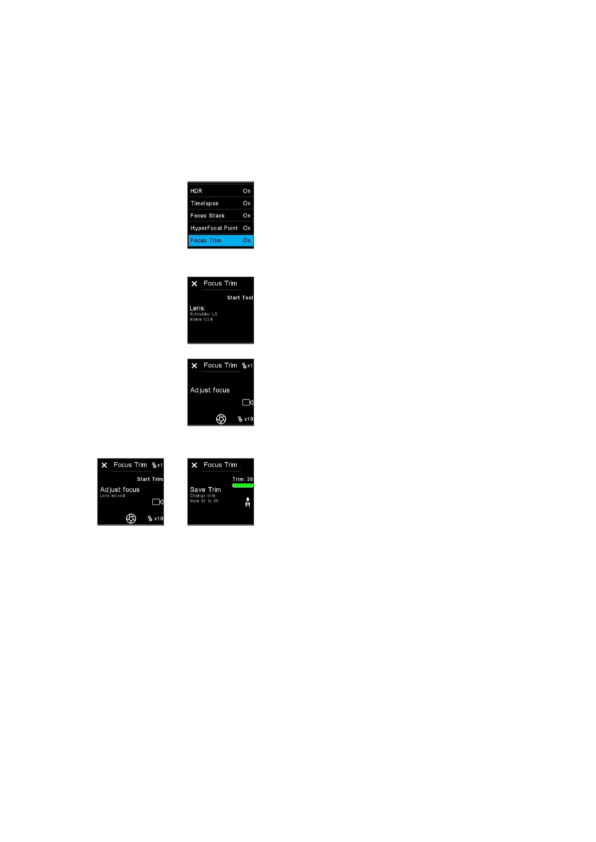 step is to save the acquired Focus Trim value by either pressing the Save icon