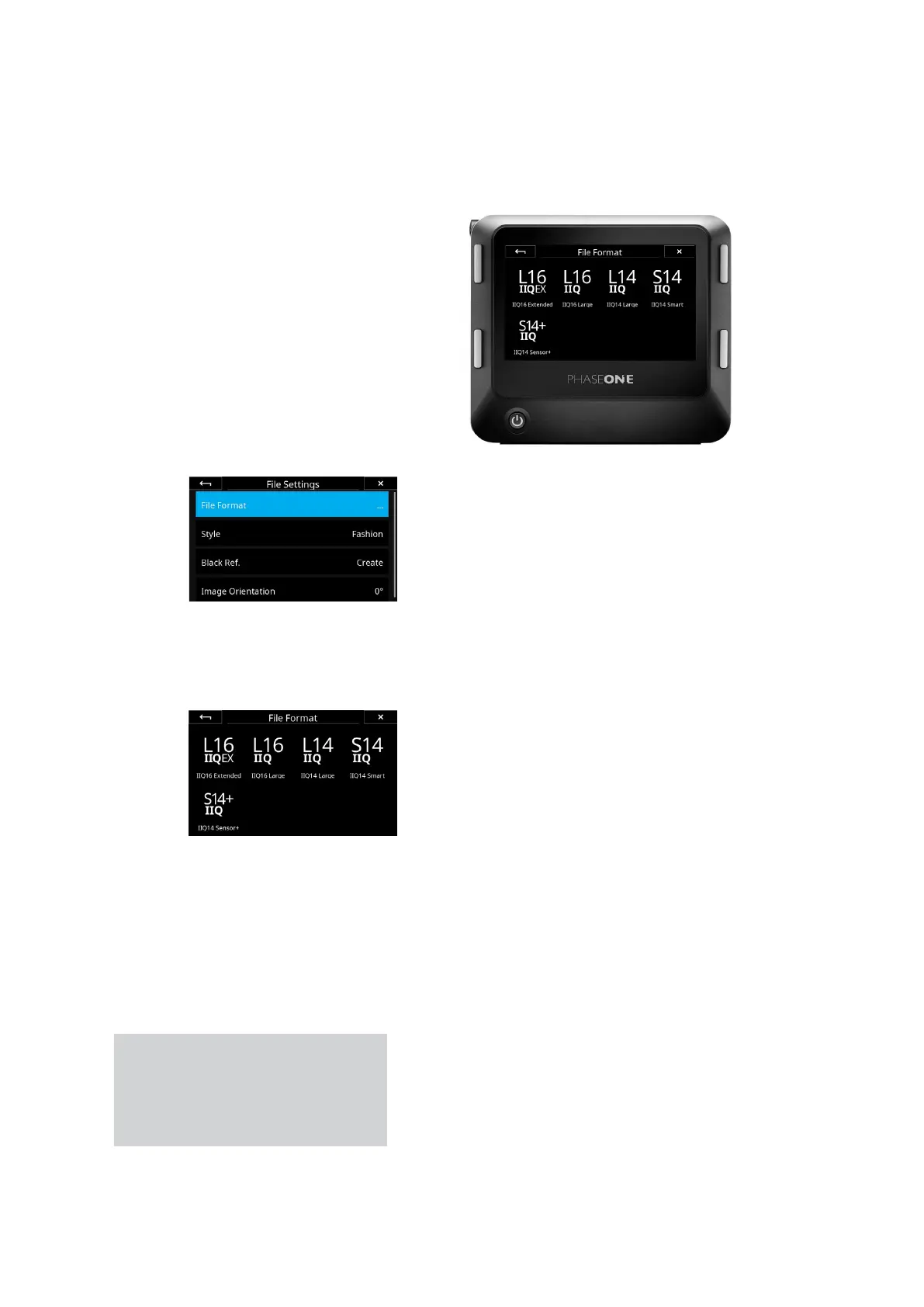 the File Format icon on the Camera Controls screen or by selecting the IQ4
