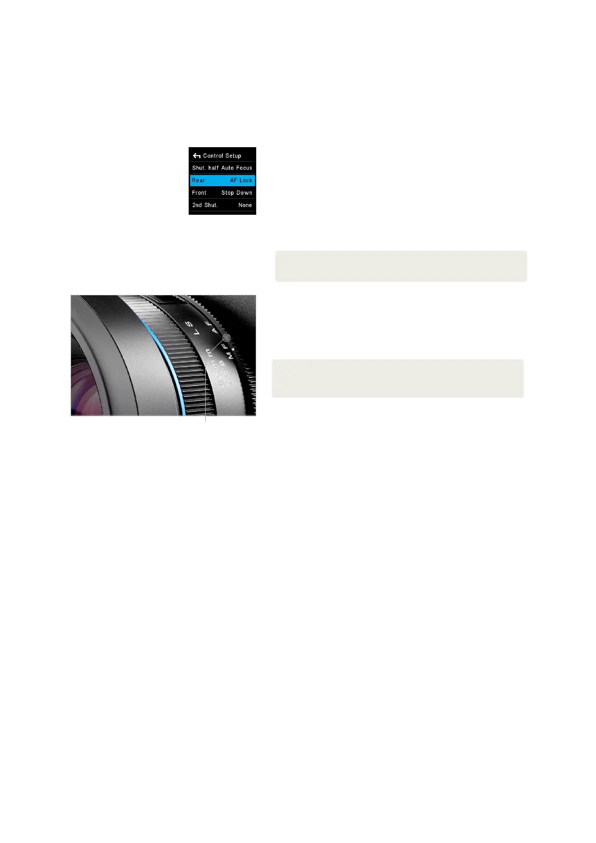 Control Setup > Rear / Front / 2nd Shut > AF Lock.