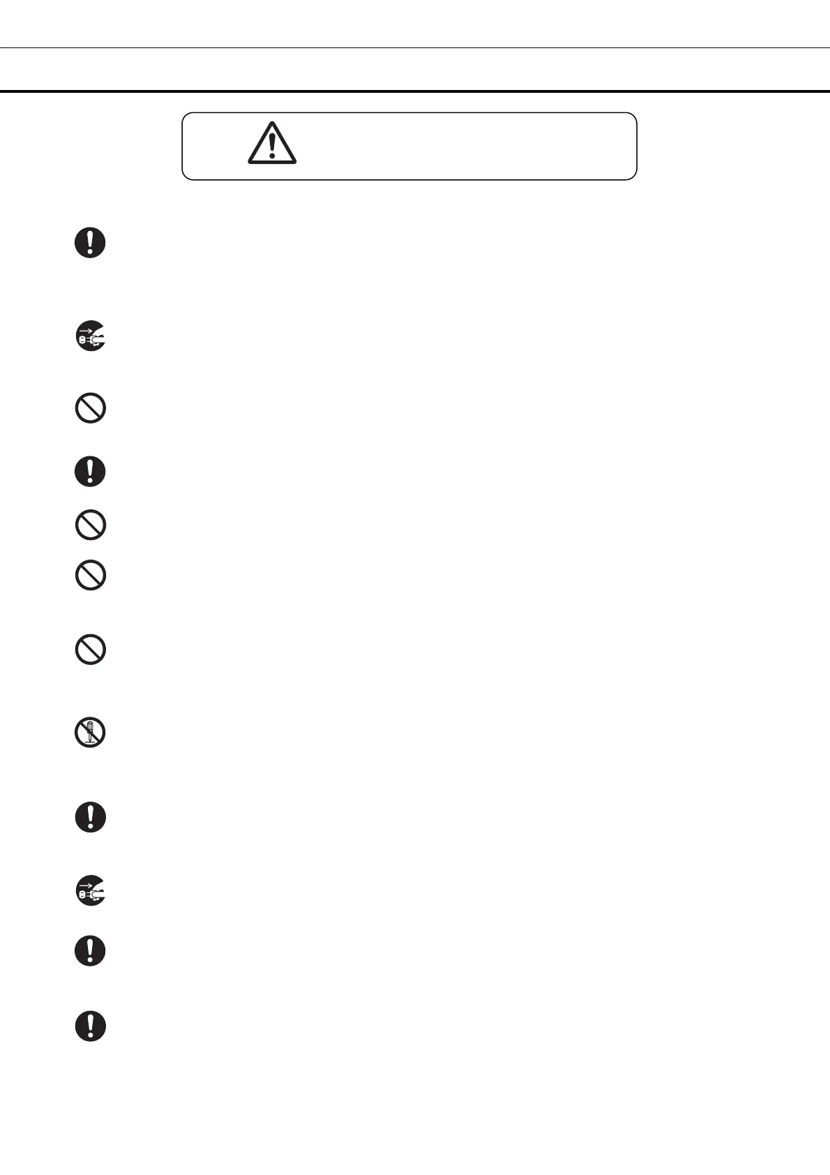 Never disassemble, repair, or modify the unit yourself. A high-voltage area is located inside the