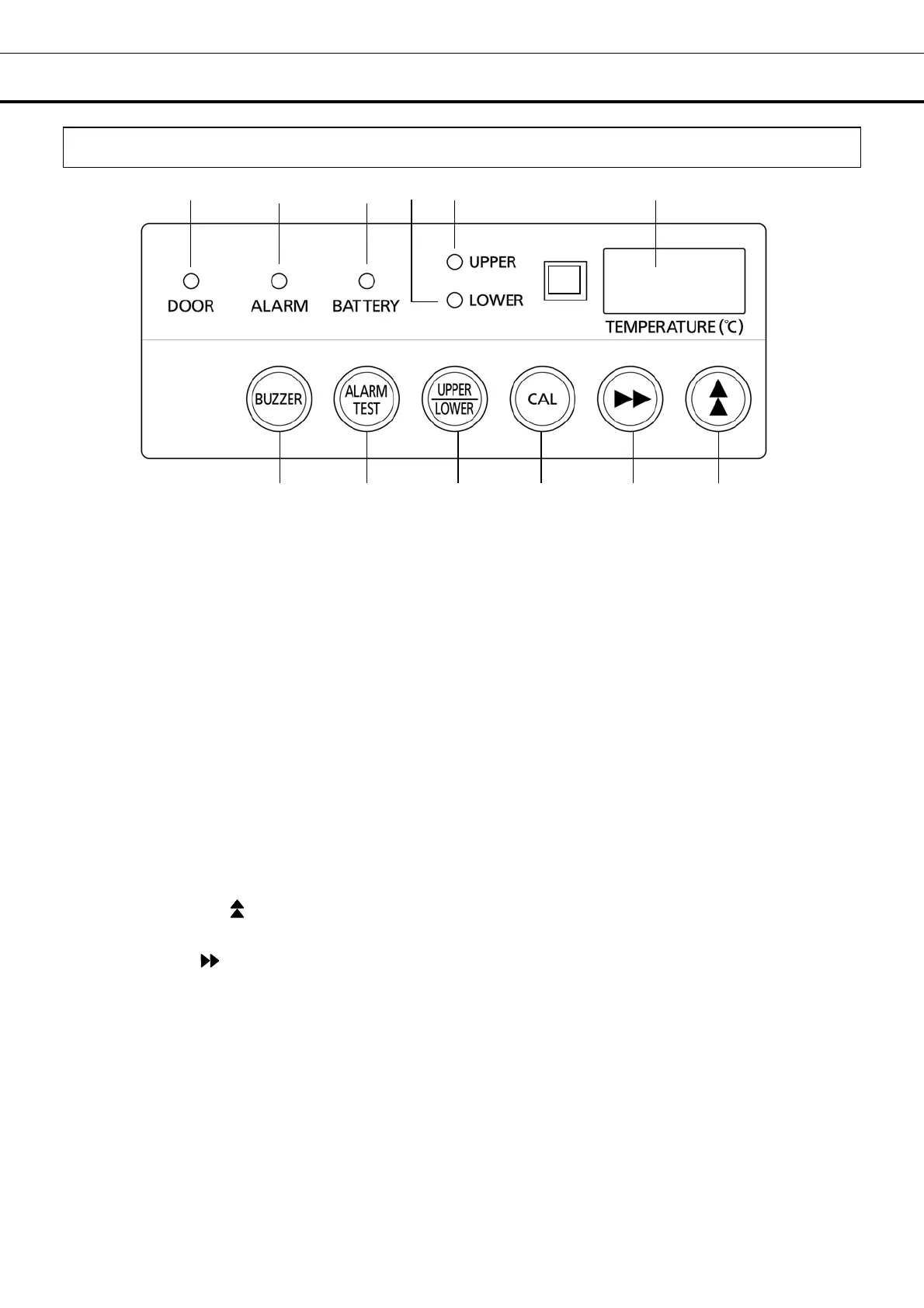 5. Temperature display indicator (UPPER): This lamp is lit when the upper monitor bottle temperature