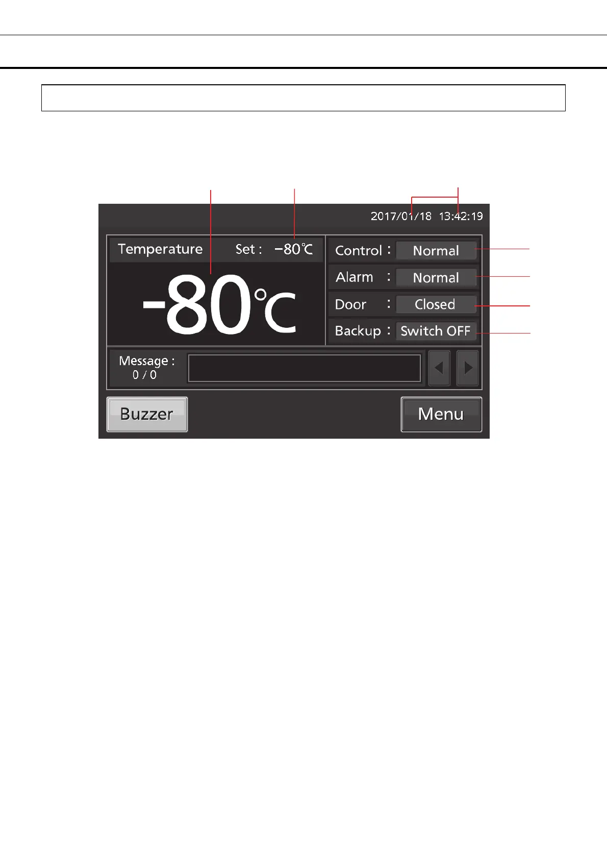1. Present temperature display field: The current chamber temperature is displayed.