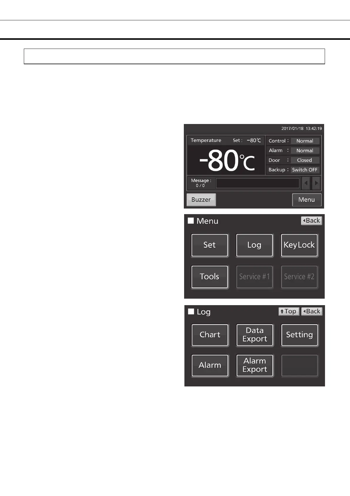 Operation log data saved in the freezer can be exported in CSV format to the USB memory inserted into