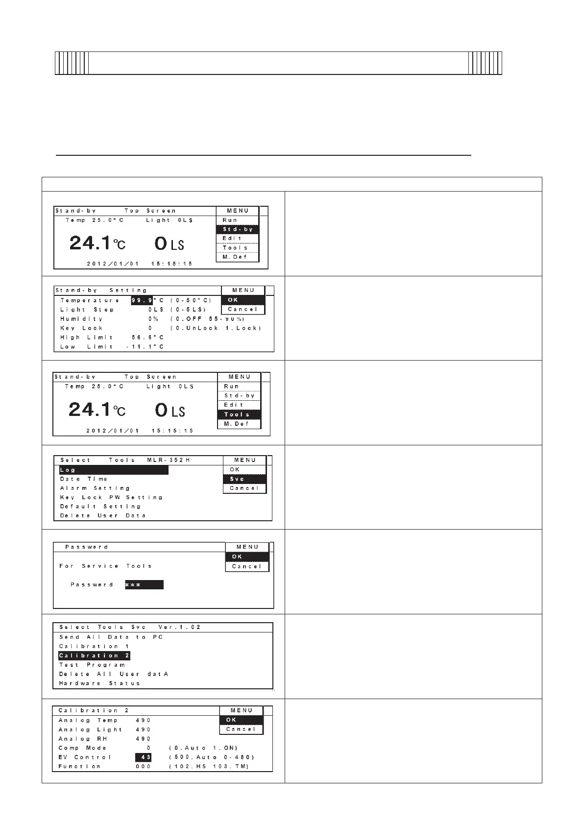 Select “Svc” in the MENU bar and press ENTER