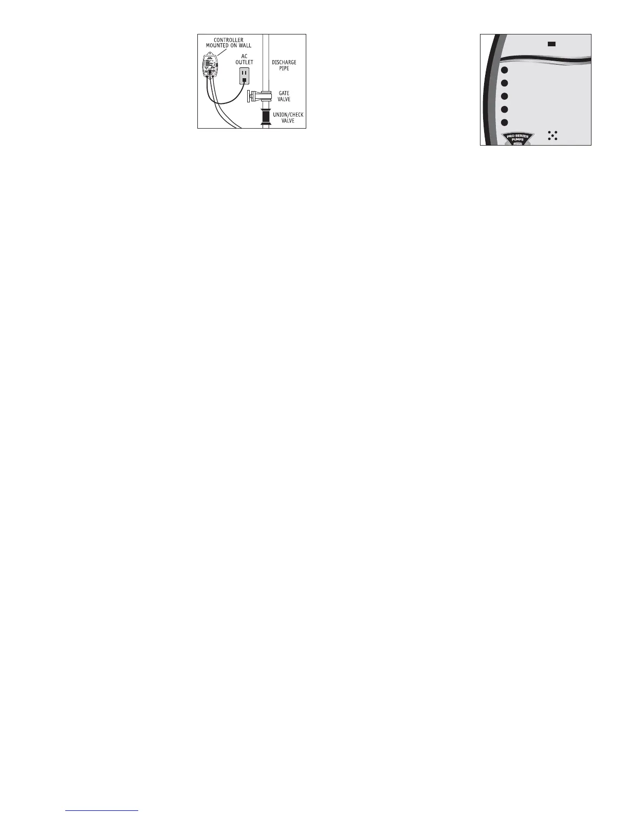 depth of the pump at all times. Do Not use the float switch and controller within