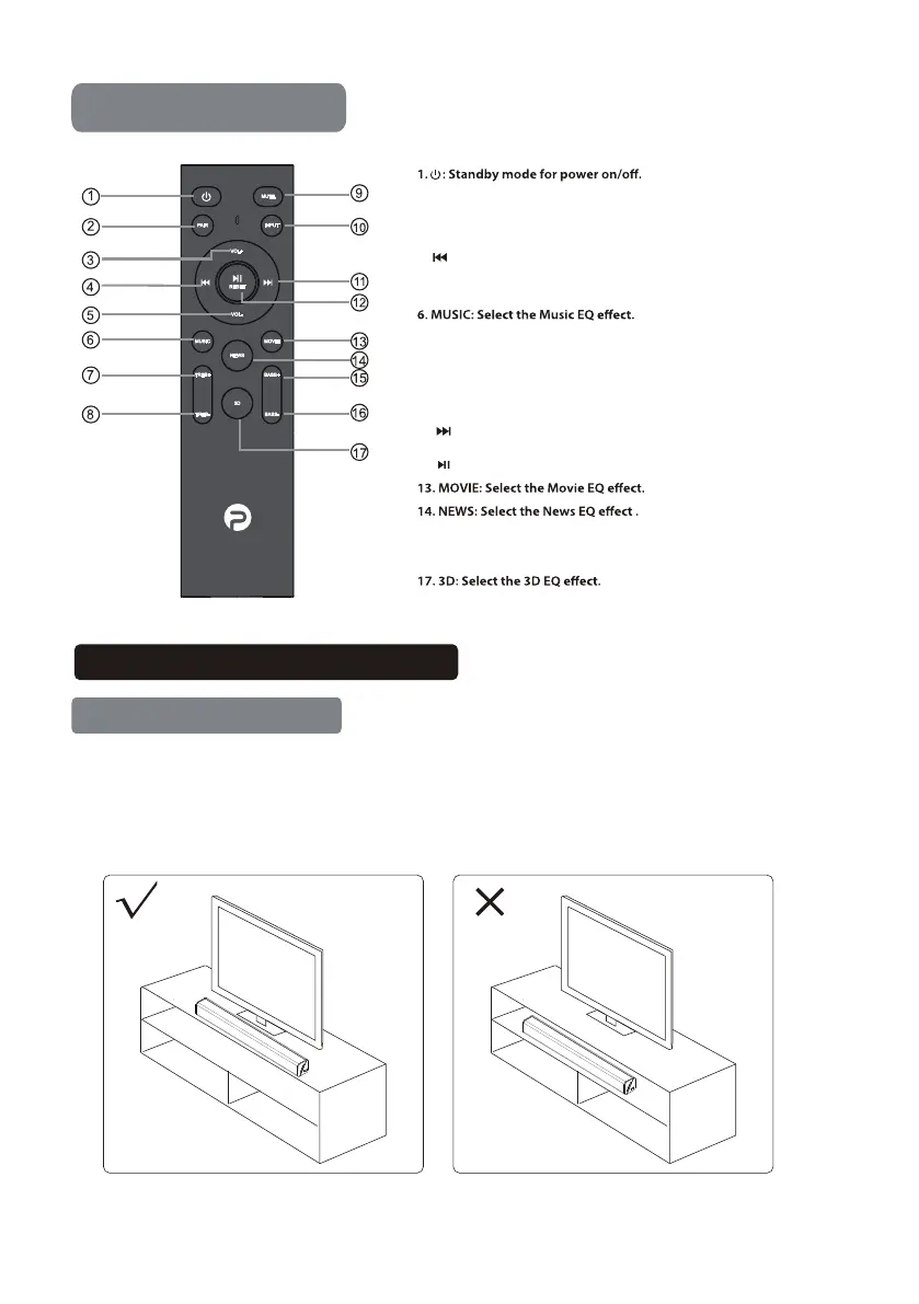 with the TV screen. Allow some space between the speaker and the wall. Don’t place inside a