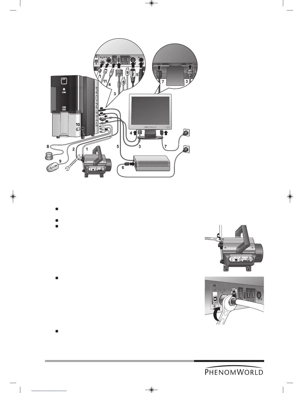 1 Connect the pre-vacuum pumphose (1) between the pump inlet and the Phenom
