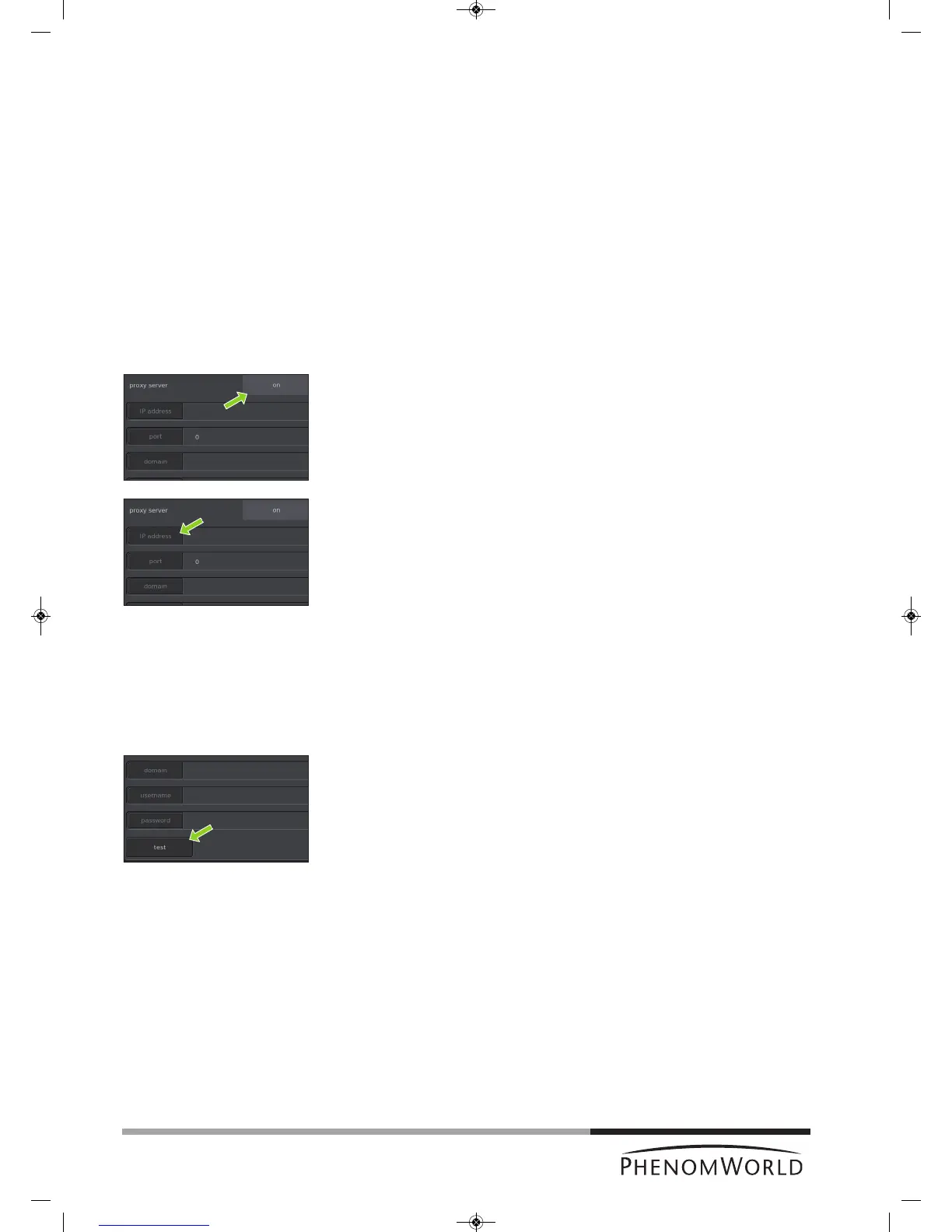 1 Touch the on button in the proxy server pane to enable the use of a proxy server.