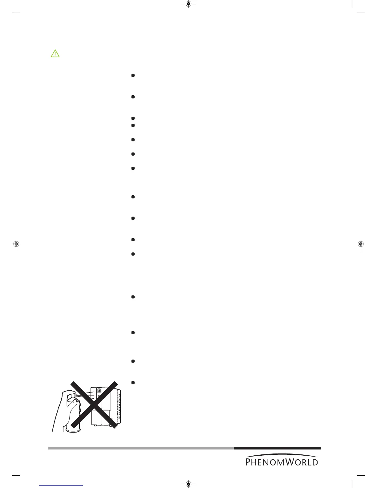 sides, the front, the back and the top of the Phenom microscope. Do not put materials