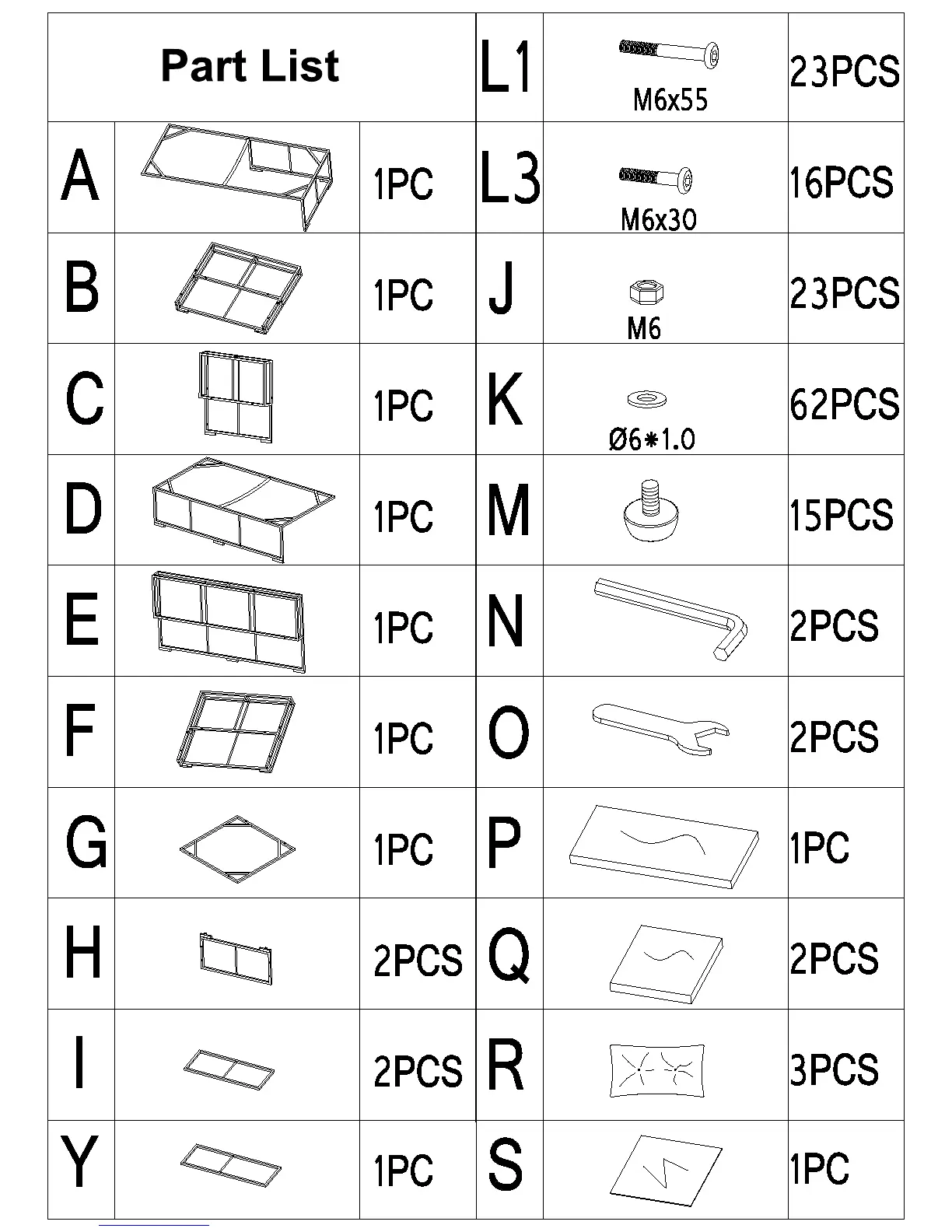 PHI VILLA 3PCS Rattan Sofa Set - Parts Identification; Component and Hardware List