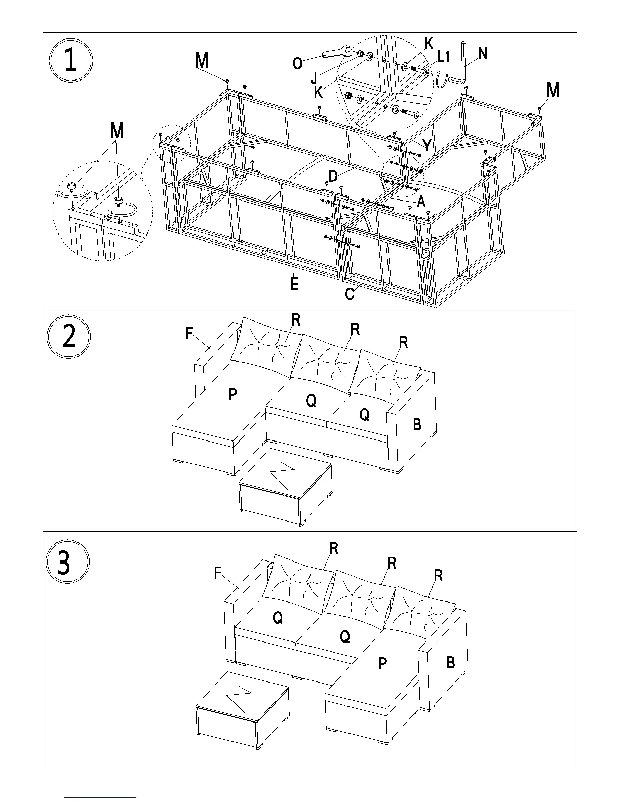 PHI VILLA 3PCS Rattan Sofa Set - Modular Sofa Assembly