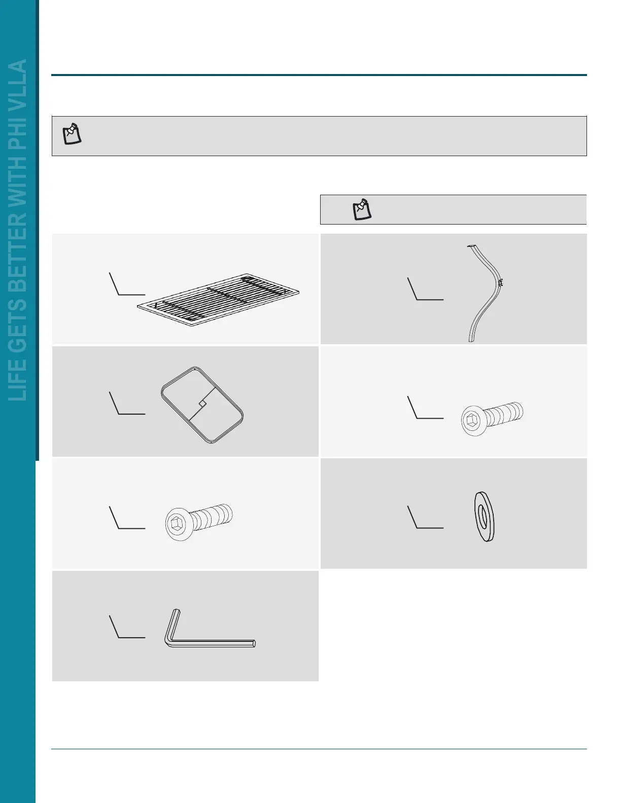NOTE: Hardware not shown to actual size.