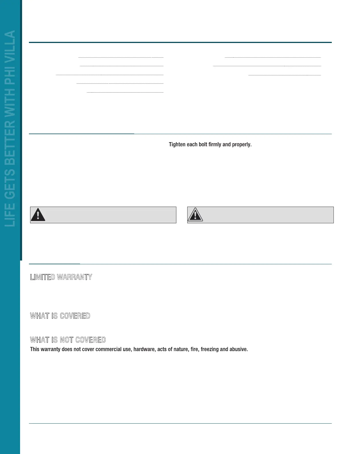 to commercial use. This collection carries a (1) year limited warranty and is valid from original date of purchase to the original owner