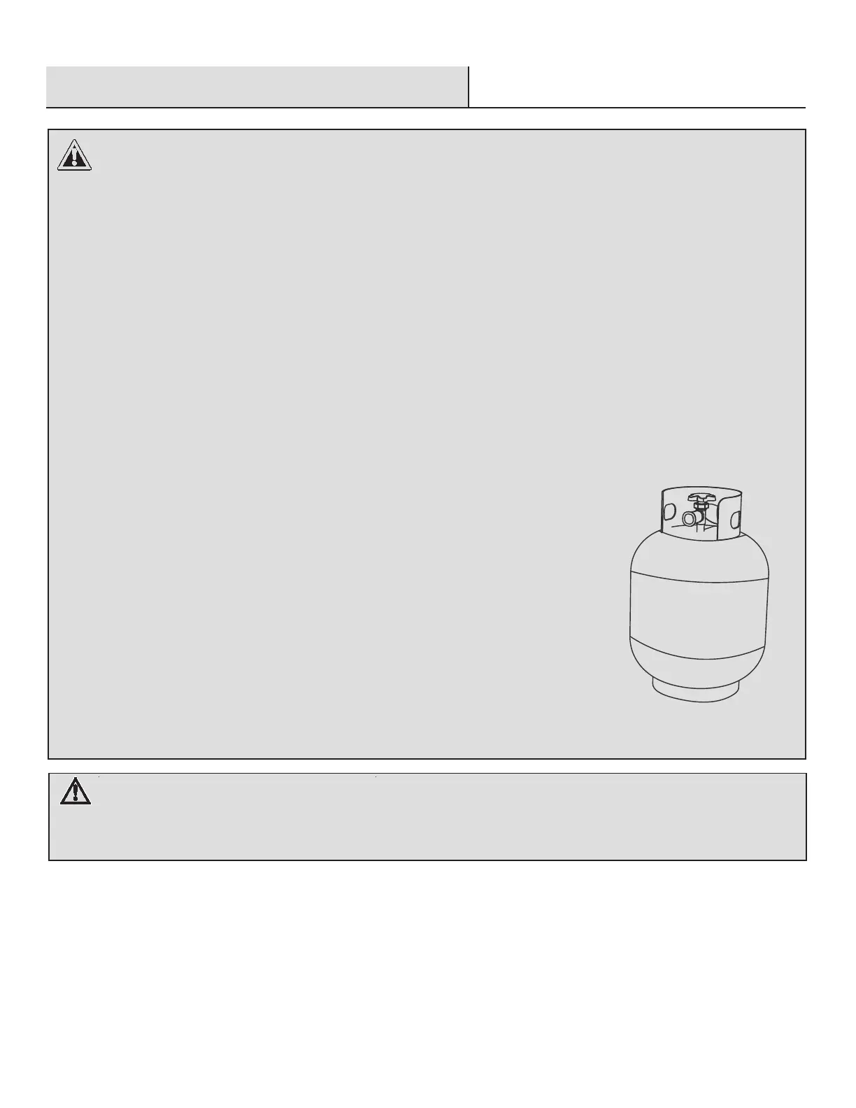 A dented, rusted, or damaged propane cylinder may be hazardous and should be checked by your cylinder supplier.