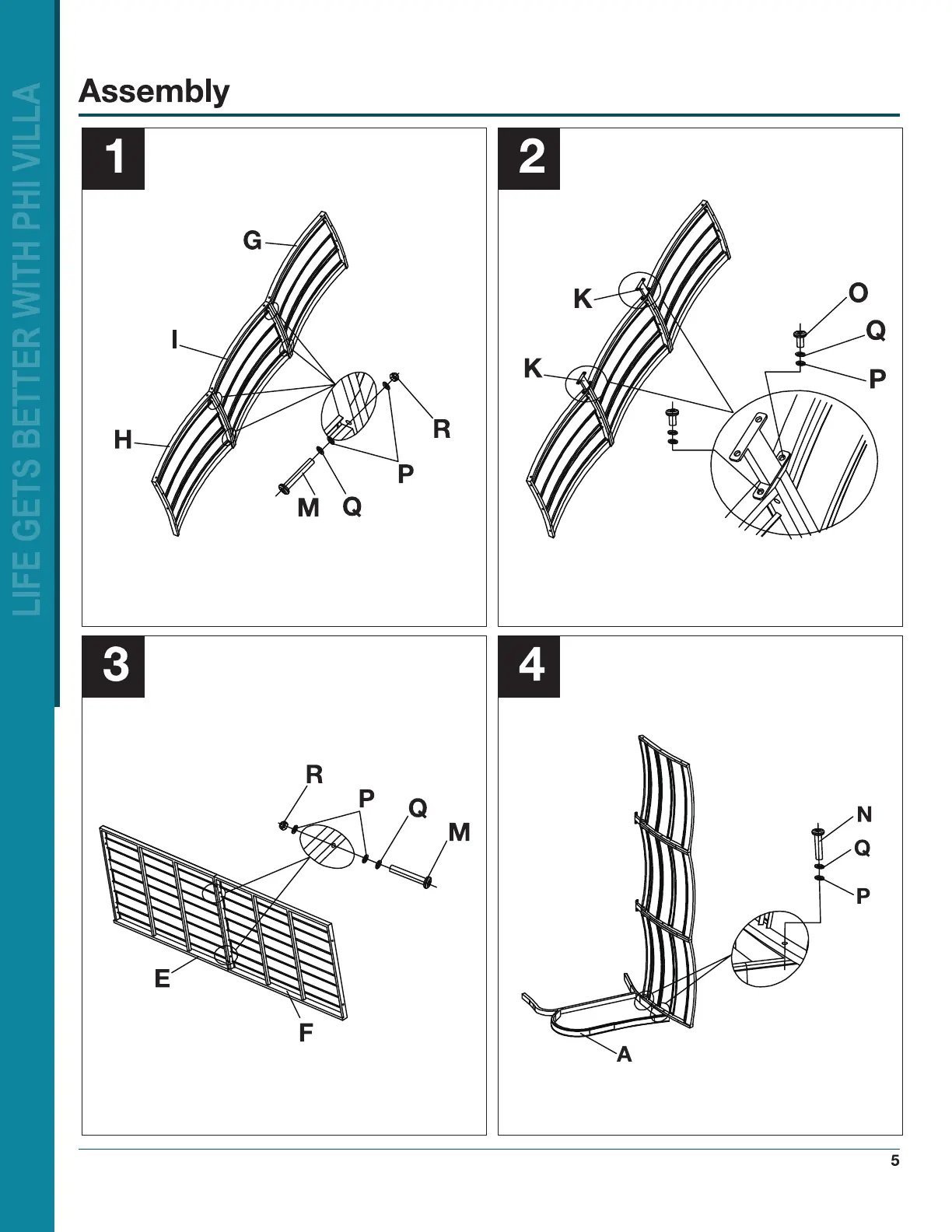 PHI VILLA E02GF144 - Step 1: Frame Component Attachment; Step 2: Seat;Base Attachment; Step 3: Backrest to Frame; Step 4: Connecting Front Frame