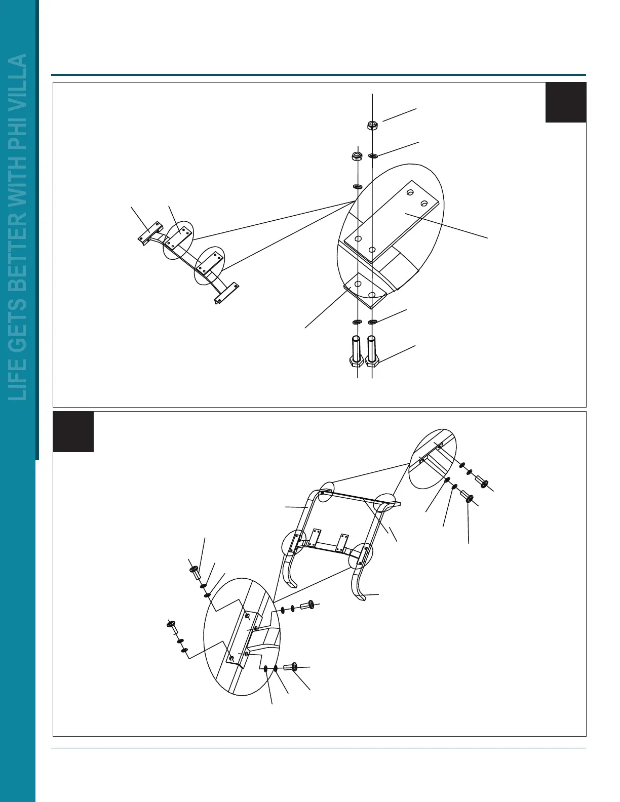 PHI VILLA E02GF144 - Assembly; Step 1: Frame Assembly; Step 2: Seat;Armrest Attachment