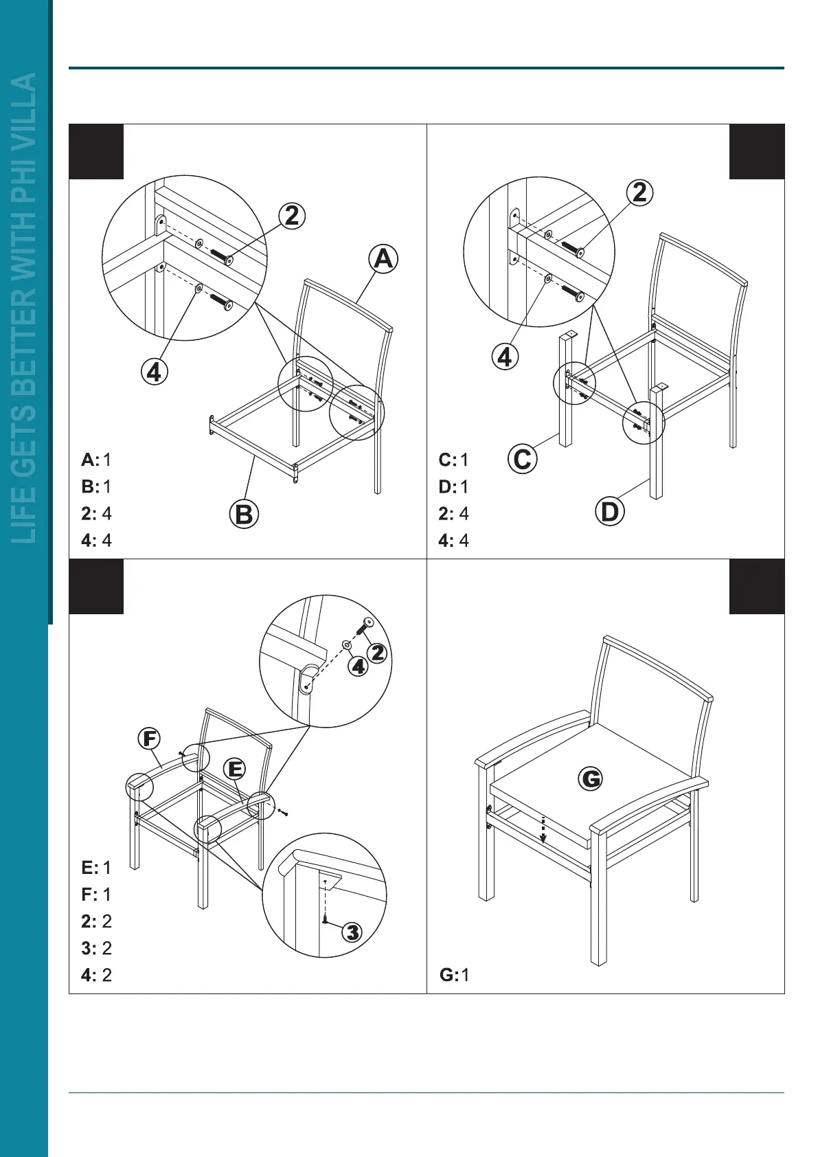 PHI VILLA PV-013 - Step-by-Step Assembly; Chair Assembly